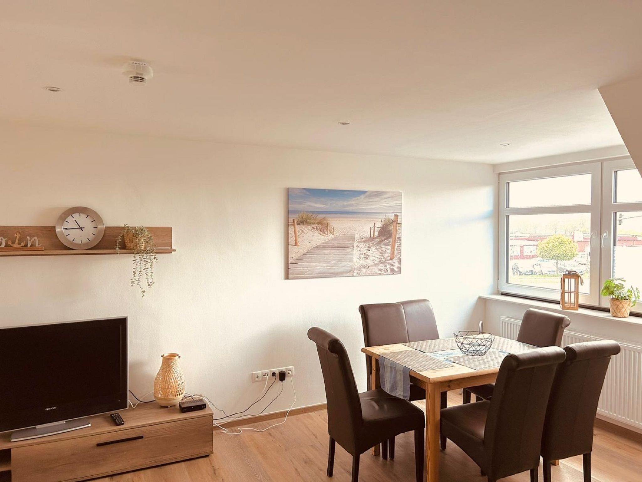 Moderne Ferienwohnung im Hotel Preyt nahe der Nordseeküste mit großer Dachterrasse und offener Wohnküche.