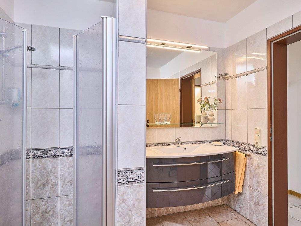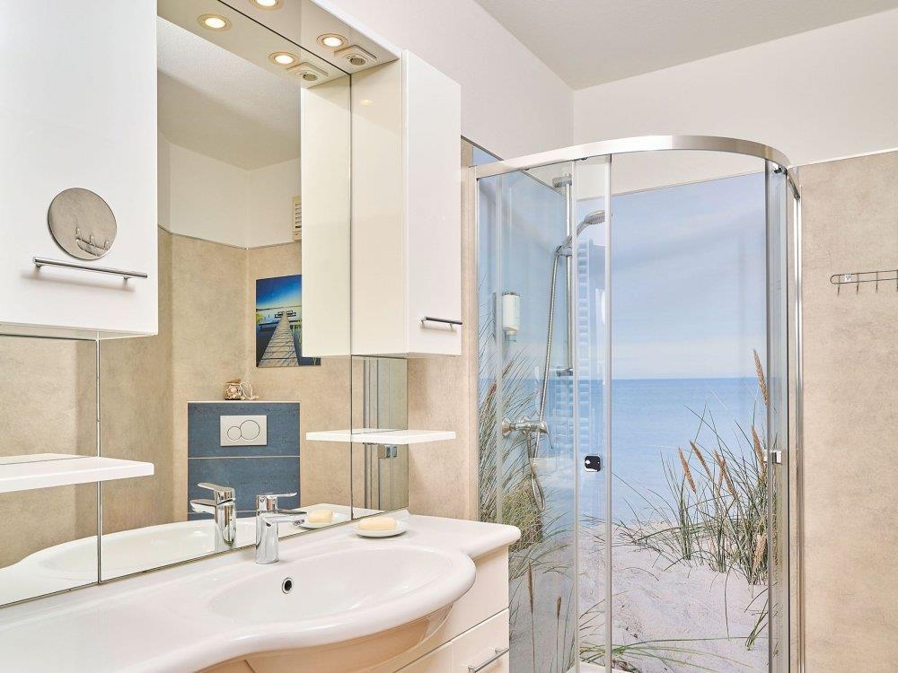 Dusche, Handtuchtrockner, Waschbecken, WC, WC und Dusche