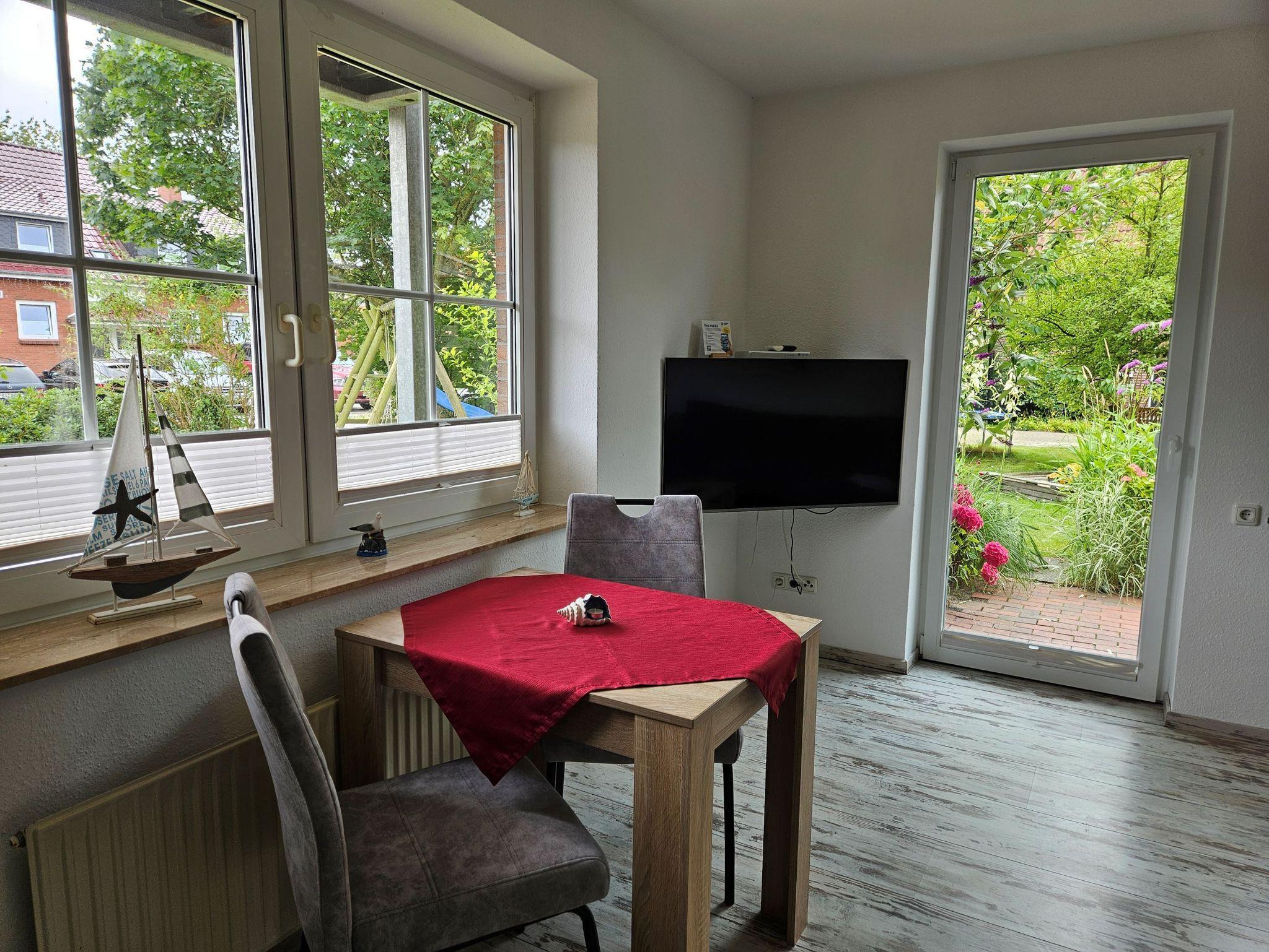 Moderne Erdgeschosswohnung Strandlust mit Garten und Terrasse in Hooksiel, ideal für erholsame Tage an der Nordsee.