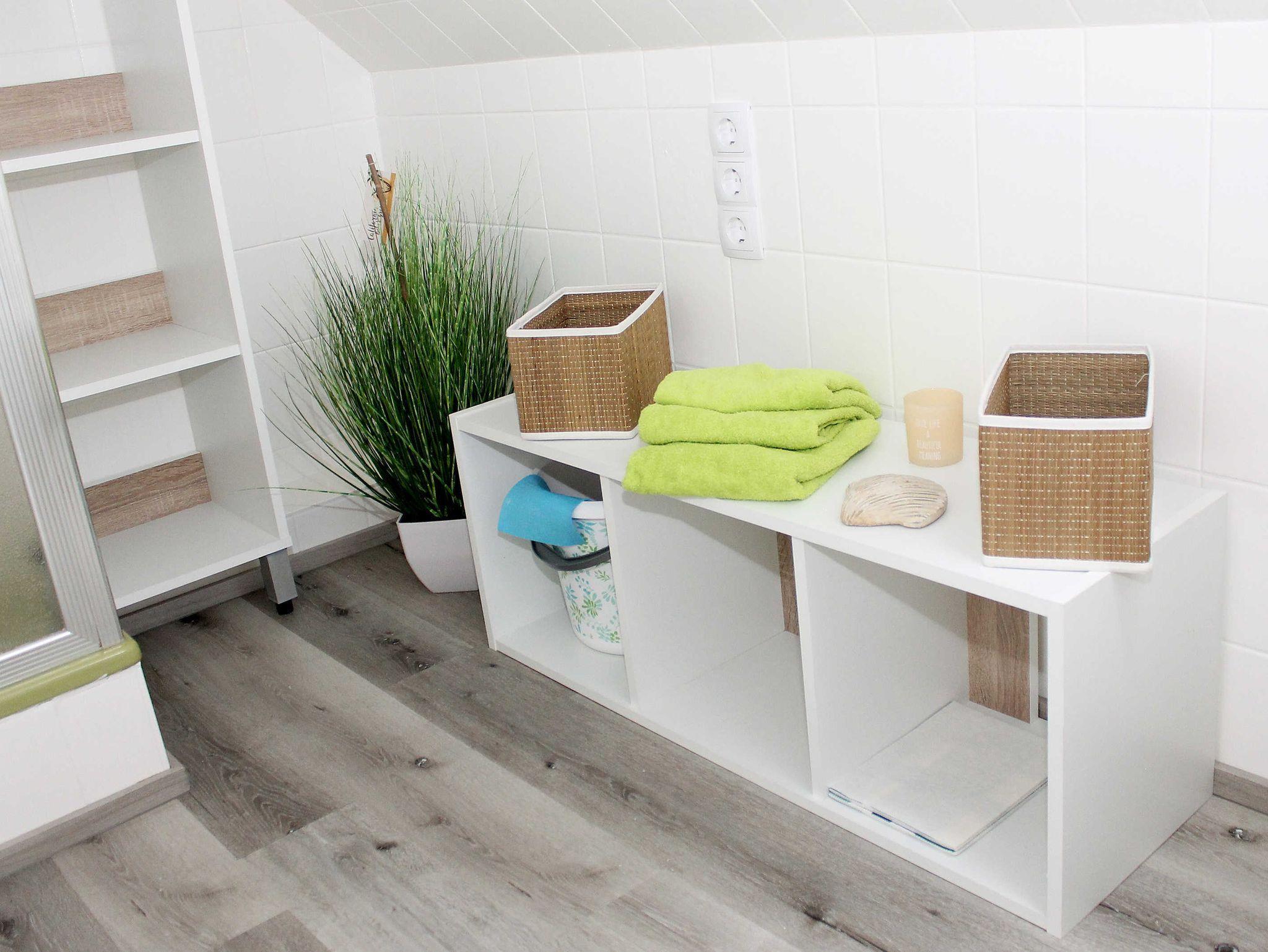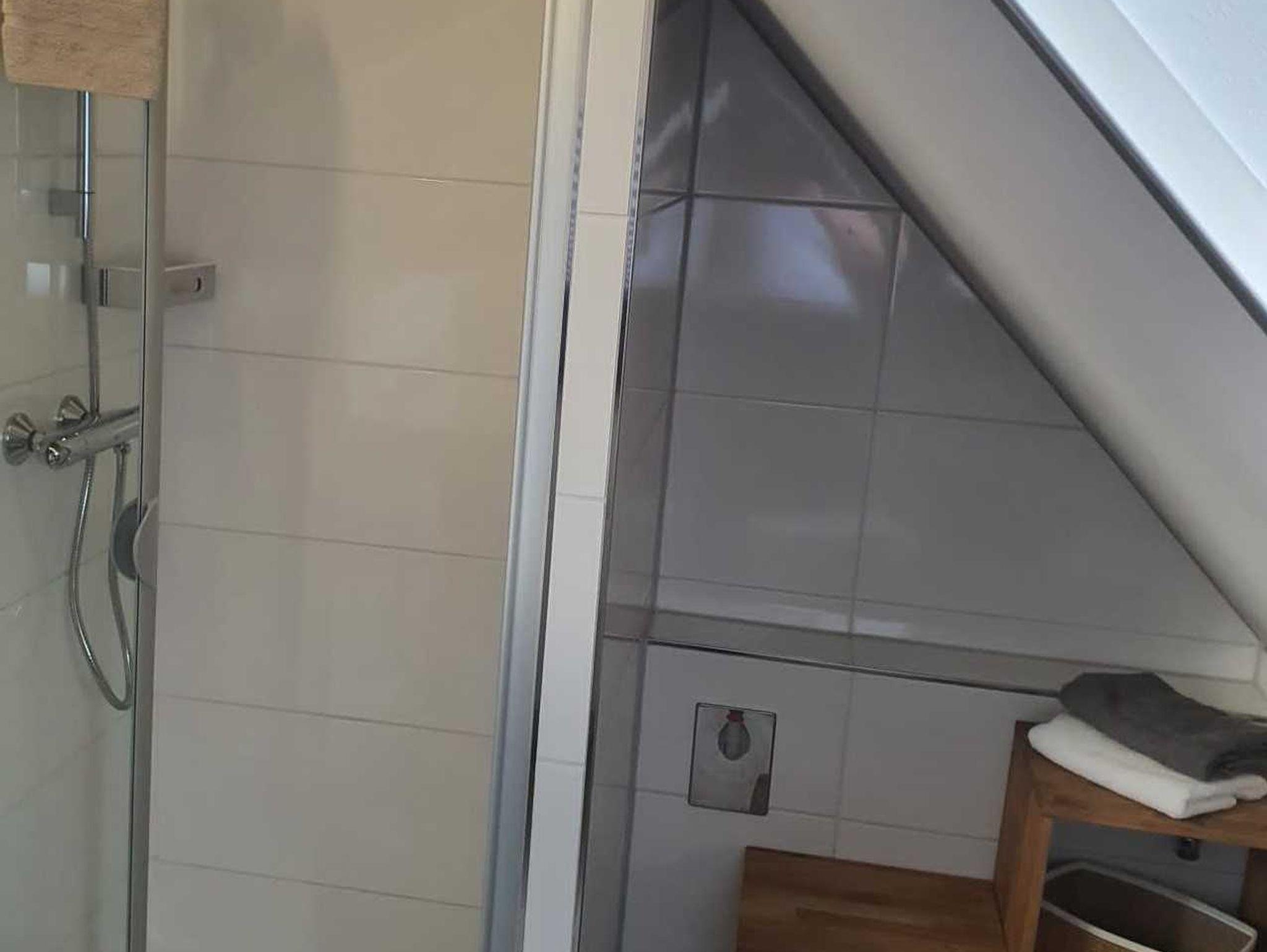 Die Wohnung befindet sich im 1.OG eines gepflegten 3 Familienhauses. Der kombinierte Wohn - Schlafraum verfügt über 1 Doppelbett 1,60 m breit, Couch, Esstisch für 2 Personen. Das Sideboard mit Flachbildschirm stellt eine kleine Trennung Zwischen Wohnen & Schlafen da. Den Fernseher kann man sowohl zum Schlaf -als auch zum Wohnbereich ausrichten. Die separate Kochecke verfügt über einen Kühlschrank mit kleinem Gefrierteil, 4 Flammen Ceran Kochfeld und Backofen, Spülmaschine. Küchenutensilien des täglichen Bedarfs, Wasserkocher, Toaster, Kaffeemaschine etc. sind selbstverständlich ausreichend vorhanden. Das Tageslichtbad ist hell, freundlich mit einer Dusche ausgestattet. Ein Parkplatz gehört zur Ferienwohnung, ebenso ein Abstellraum für Fahrräder.