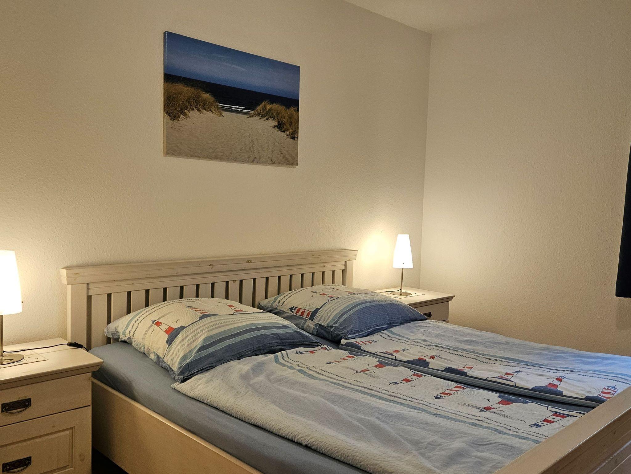 Die Erdgeschoßwohnung Baltrum verfügt über einen Wohnraum mit Küchenzeile mit Zugang zur Terrasse (direkt am Garten), sowie zwei Schlafräume mit Doppelbett, ein Bad mit DU/WC und einen Abstellraum. Sie ist mit Fliesen- und Laminatböden ausgestattet. In der vollausgestatteten Küche finden Sie Geschirrspüler, Wasserkocher, Backofen, Mikrowelle und Kühlschrank mit Eisfach. Flachbildfernser, Blu-ray-Player und WLAN gehören selbstverständlich zur Ausstattung.