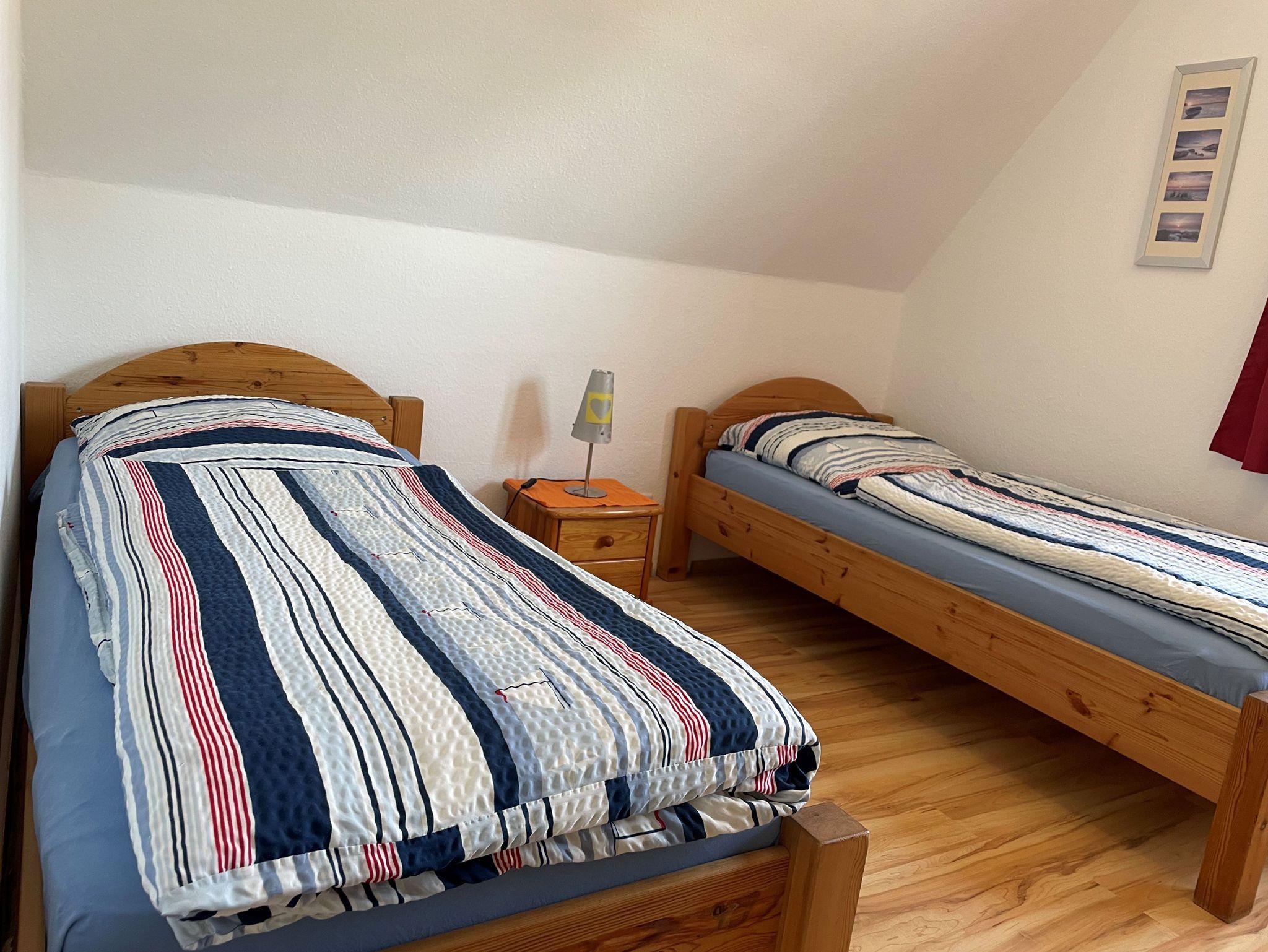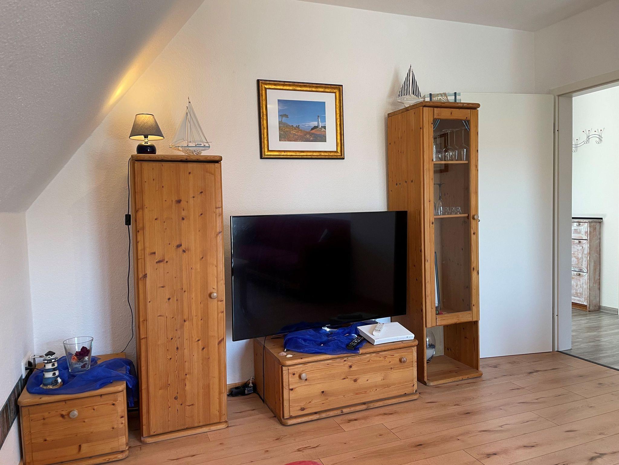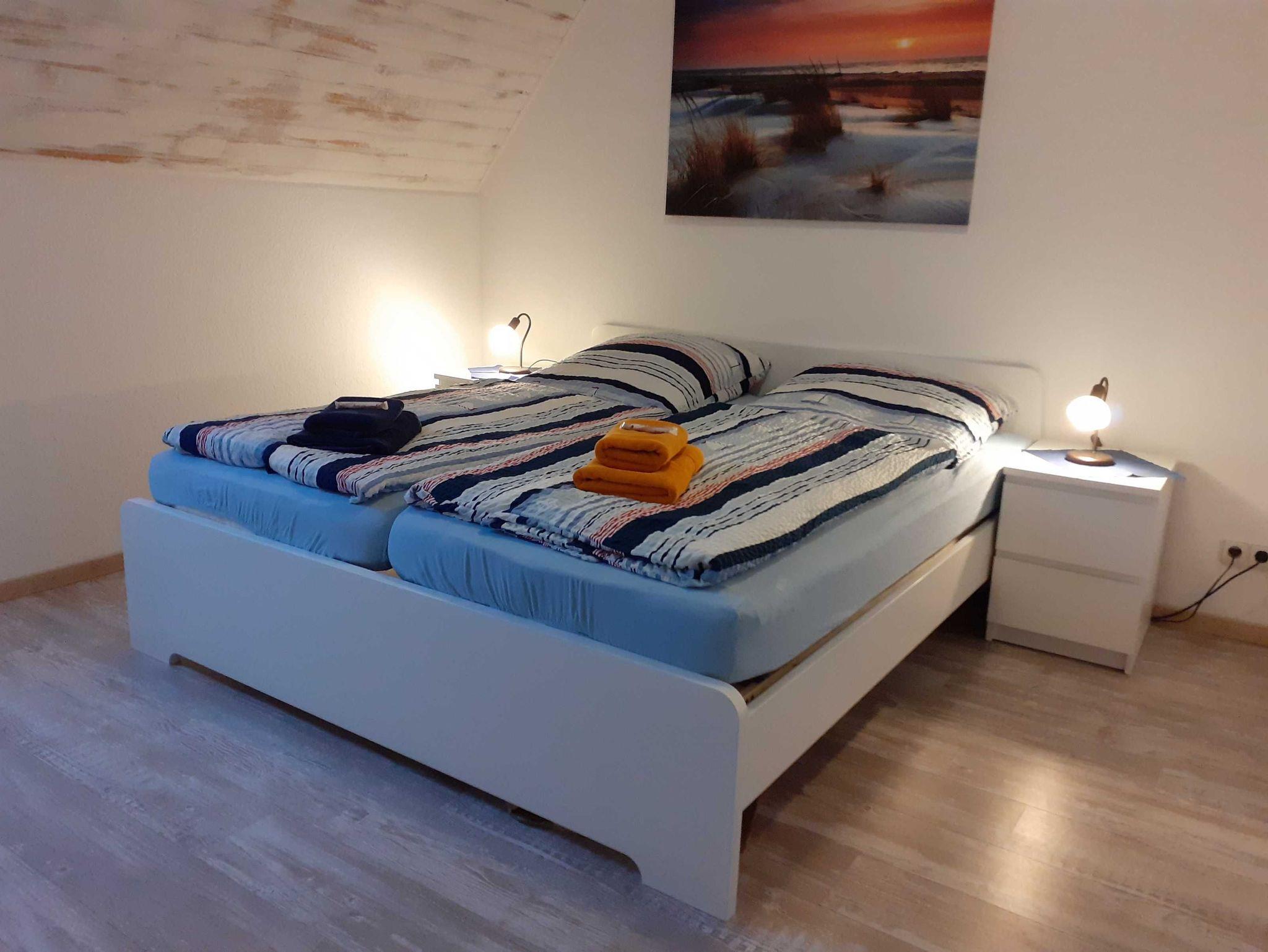 Die Obergeschoßwohnung Spiekeroog verfügt über einen gemütlichen Wohnraum, eine separate, lichtdurchflutete Küche, ein Bad mit Tageslicht sowie zwei Schlafräume. Sie ist mit Fliesen- und Laminatböden ausgestattet und verfügt über einen großen Flachbild-Fernseher, einen Blu-ray-Player und WLAN. In der Küche stehen Geschirrspüler, Backofen, Mikrowelle, Wasserkocher und Kühlschrank mit Eisfach zur Verfügung.