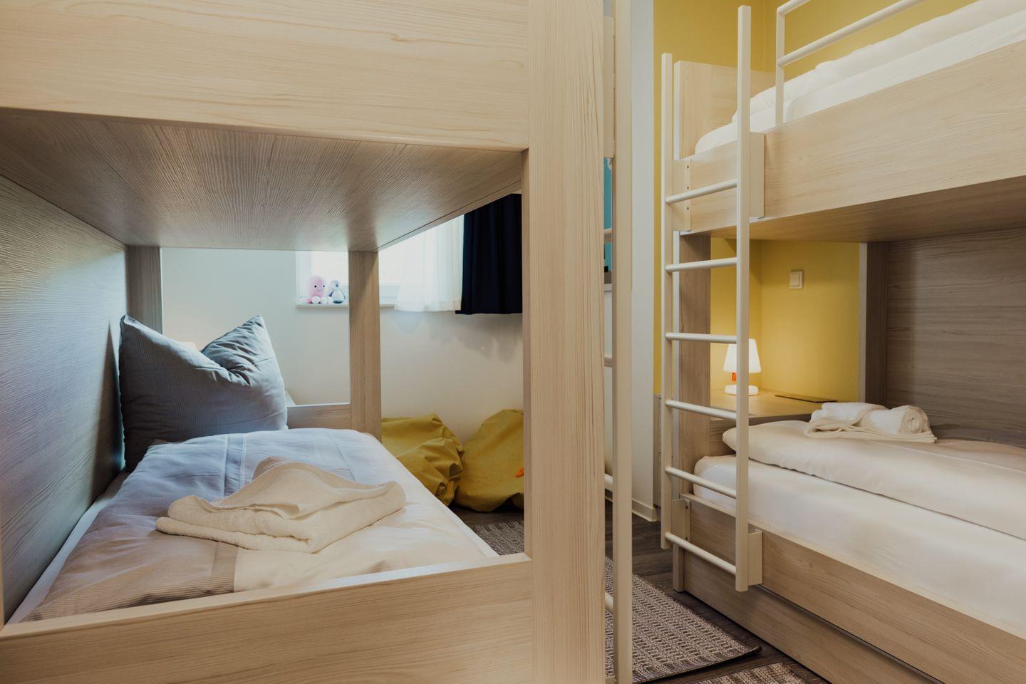 Die zwei Schlafzimmer mit bequemen Betten, das moderne Bad und der kombinierte Wohn- und Esszimmerbereich mit einer gut ausgestatteten Küche schaffen eine komfortable Umgebung. Eine gemütliche Sitzecke im Wohnzimmer lädt zum gemeinsamen Entspannen ein.