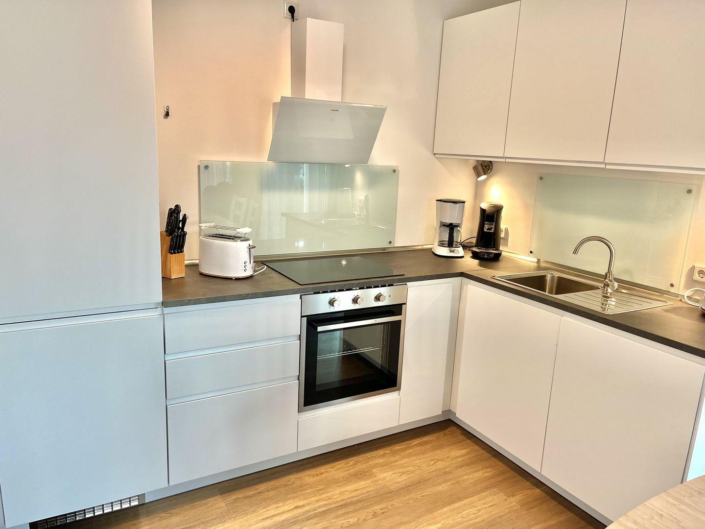 In der modernen offenen Küche finden Sie alles, was das Herz eines Hobbykochs höher schlagen lässt. Die vollausgestattete Küche verfügt über moderne Geräte wie ein Ceran-Kochfeld mit Backofen, Kaffeemaschine, Kaffee-Pad-Maschine, Spülmaschine, Wasserkocher, Toaster und einen Kühlschrank mit Gefrierfach, sowie andere kleine nützliche Helfer. Das gemütliche Stoffsofa im Wohnbereich mit Blick auf die Terrasse lädt zum Entspannen ein.