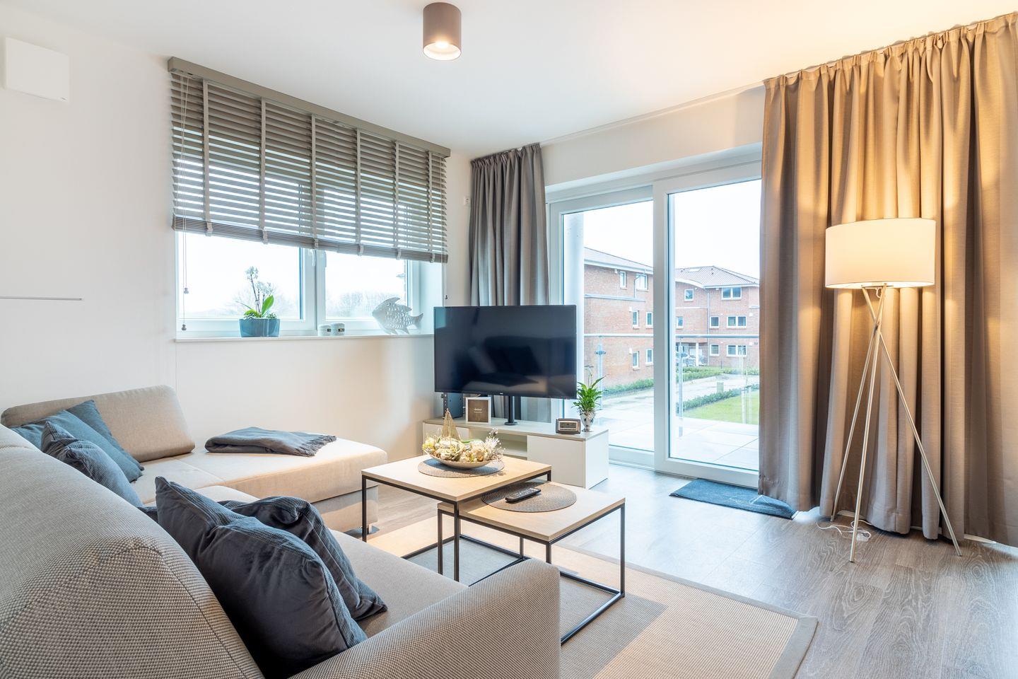 Moderne Ferienwohnung Störtebeker in Hooksiel mit Balkon, Infrarotkabine und komfortabler Ausstattung für erholsame Tage an der Nordsee.