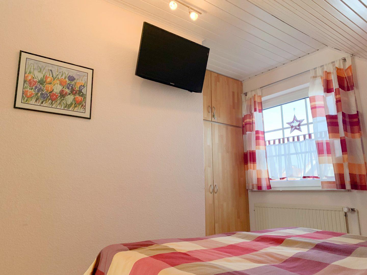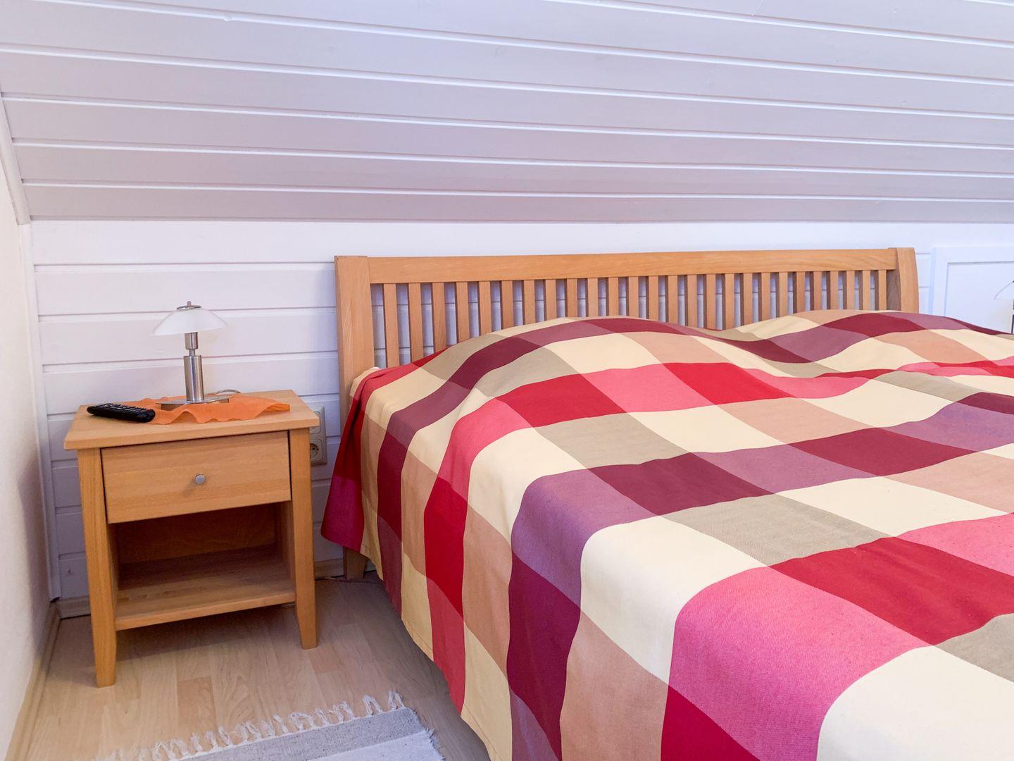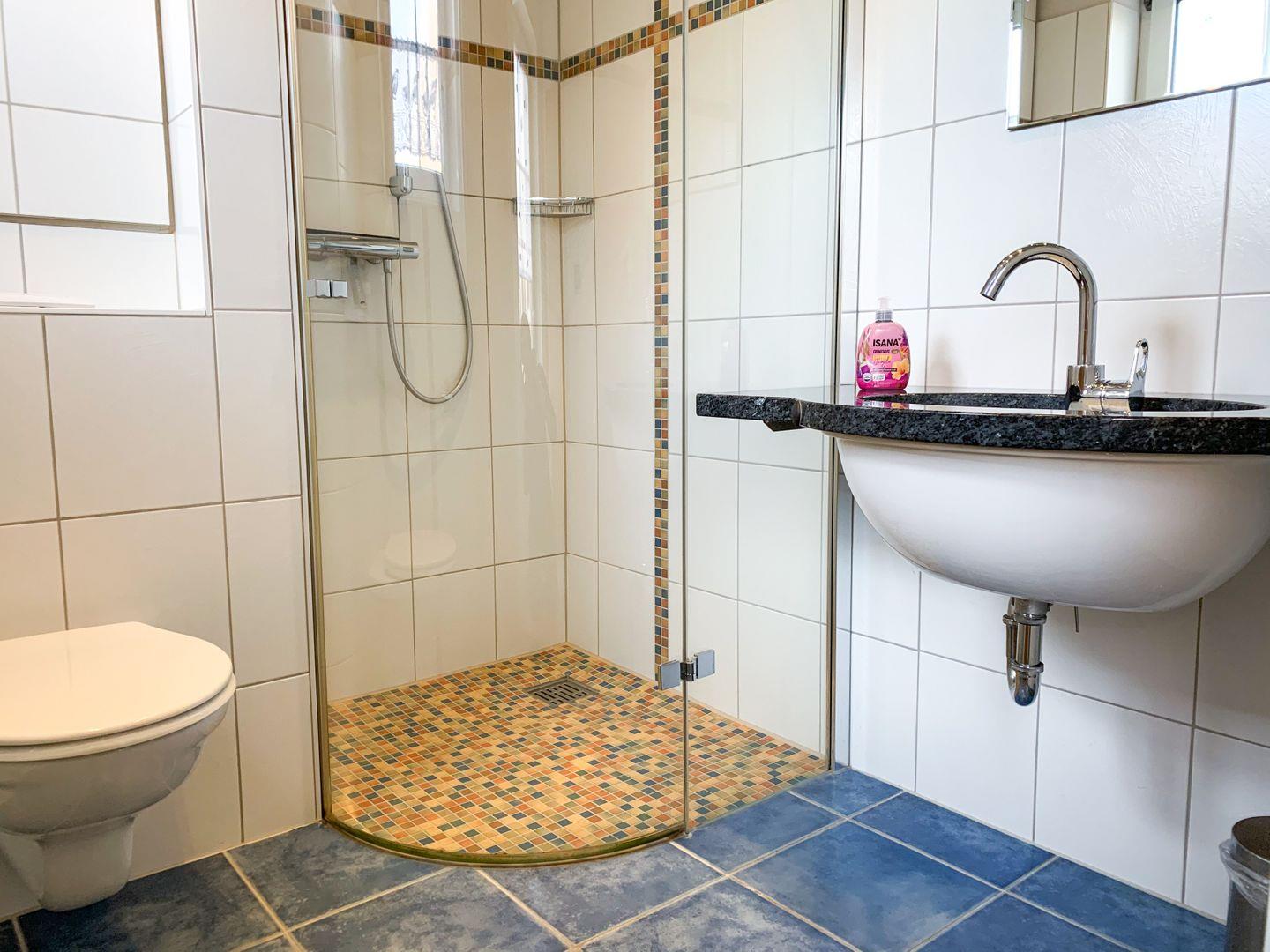 Über eine einladende Holztreppe erreichen Sie das Obergeschoss, wo Sie von zwei Schlafzimmern mit schönem Laminatboden empfangen werden. Ein Schlafzimmer verfügt über ein gemütliches Doppelbett und ein Kinderbett, während das andere Zimmer mit drei Einzelbetten ausgestattet ist, von denen zwei mühelos zu einem weiteren Doppelbett umgewandelt werden können. Ein zweites Badezimmer mit Dusche/WC, Waschmaschine und Trockner sorgt für zusätzlichen Komfort. Die charmante Dachgaube verleiht diesem Bad eine ganz besondere Atmosphäre.