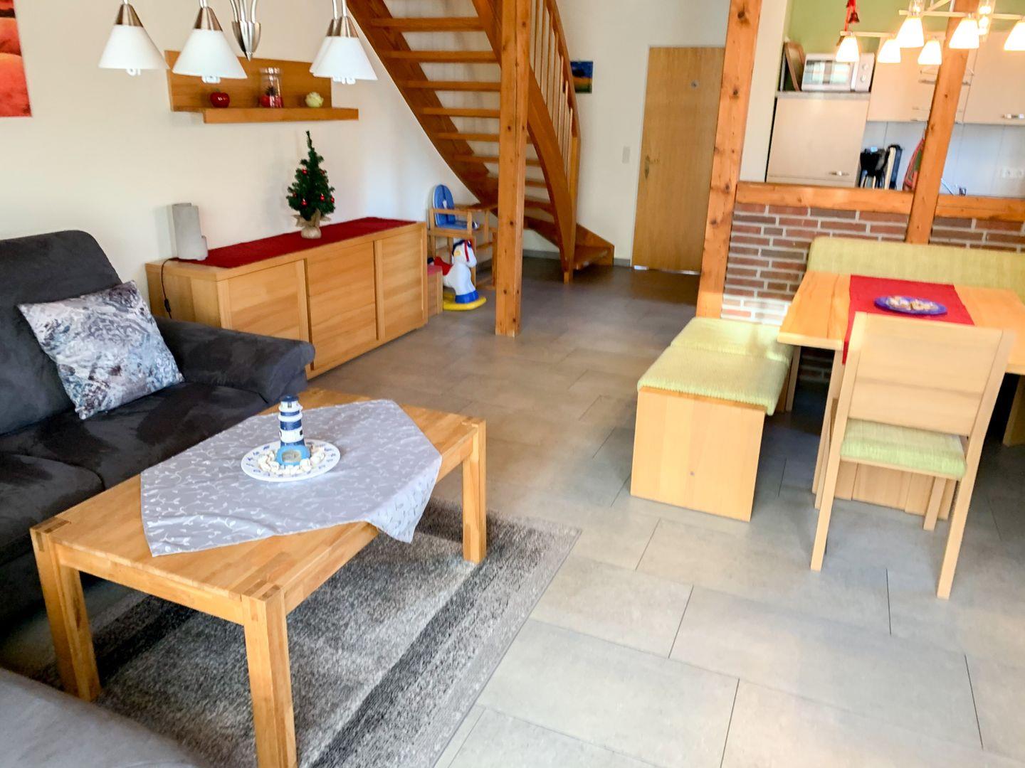 Im Erdgeschoss erwartet Sie ein einladender Wohnraum mit einer stilvollen, voll ausgestatteten Küche. Hier stehen Ihnen eine Spülmaschine, ein Herd mit Cerankochfeld, ein Backofen, eine Mikrowelle und sogar eine Senseo-Kaffeemaschine zur Verfügung. Der Wohnbereich ist mit einer gemütlichen Ledergarnitur, einer Essecke und einer Wohnzeile ausgestattet. Ein LCD-Flachbildschirm mit DVD-Player und eine Stereoanlage sorgen für Unterhaltung, während Sie über den kostenlosen Internetzugang mit WLAN stets verbunden bleiben können. Für die kleinen Gäste steht ein bereitstehender Kinderhochstuhl zur Verfügung. Ein Badezimmer mit Dusche/WC sowie ein praktischer Abstellraum runden das Angebot im Erdgeschoss ab.
