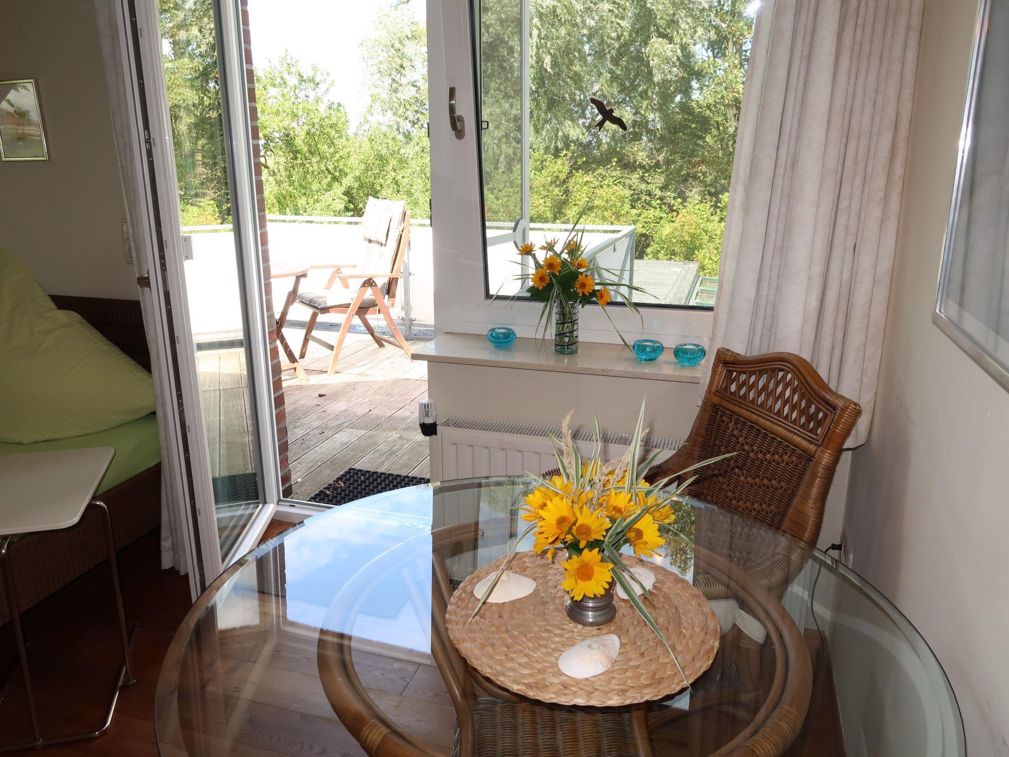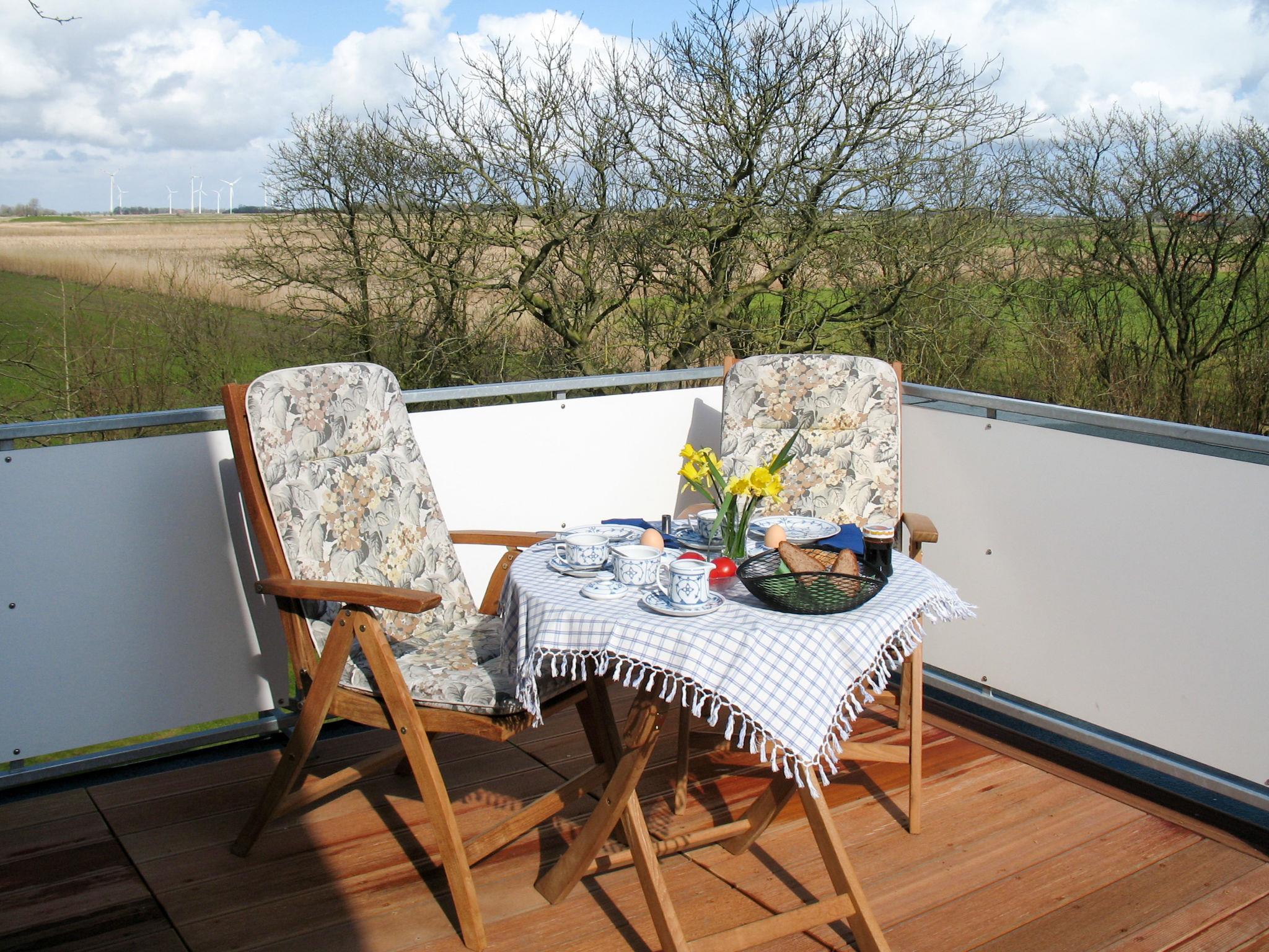 Gemütliche 1-Zimmer-Wohnung mit großer Terrasse und herrlichem Blick in Horumersiel, ideal für erholsame Urlaubstage.