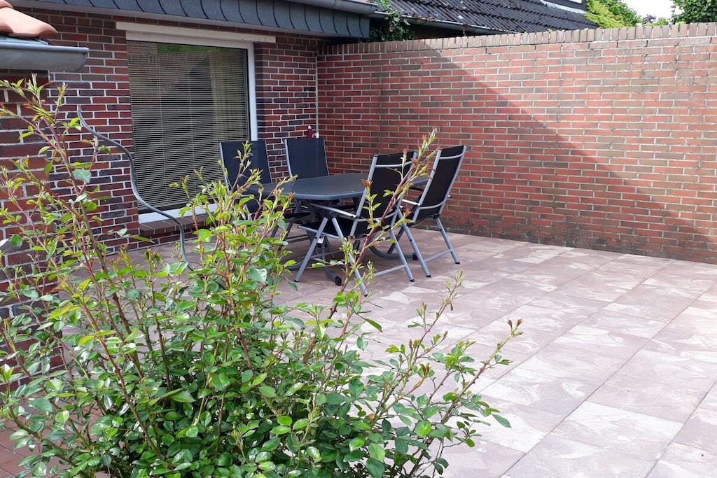 Unser romantisches Ferienhaus Friesenwiege liegt direkt am Deich unweit vom großen Sandstrand in Schillig. Das freistehende Ferienhaus verfügt über ein Schlafzimmer mit Doppelbett und einem offenem Galerieschlafzimmer mit zwei Einzelbetten. Außerdem einem großen Wohn-Essbereich mit Küche. Außerdem gibt es natürlich einen freien WLAN-Zugang. Ein kleiner windgeschützter Garten mit Terrasse hinter dem Haus kann direkt vom Esszimmer erreicht werden. Vor dem Haus befindet sich noch ein von Hecken umgebener Garten mit Sonnenliegen. Hunde bis zu einer Größe von 40cm sind uns auch willkommen.