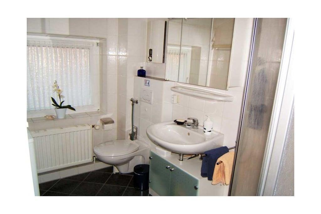 Zentral in einer ruhig gelegenen Sackgasse befindet sich das Ferienhaus Am Tief 22 mit der im OG liegenden Ferienwohnung. Neben dem Wohnraum befindet sich der Essraum mit integrierter Küche; angrenzend lädt eine Sitzgruppe an der Sonnenseite zum Verweilen ein; daneben liegt der Südbalkon, wo Sie auch noch die Abendsonne genießen können. (Rauchen auf dem Balkon möglich) Ein Schlafzimmer verfügt über ein großes Doppelbett, das andere hat 2 Einzelbetten. Das Bad mit Dusche hat einen erhöhten WC-Sitz, Stauraum, Ablage und Sitzgelegenheit, Kinder WC-Sitz vorhanden, ausziehbarer Wandtrockner.