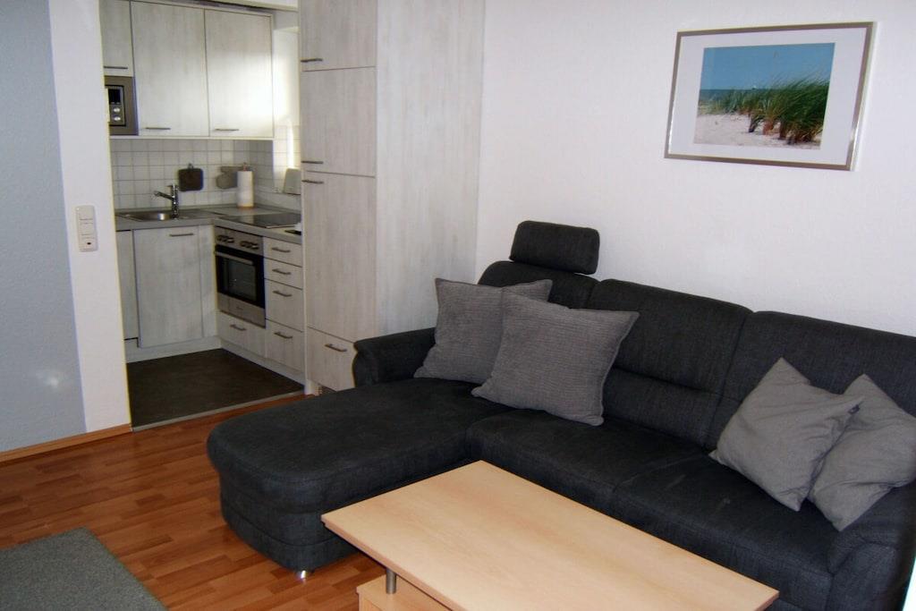 Moderne Ferienwohnung mit Balkon und Meerblick in Horumersiel, ideal für entspannte Tage an der Nordsee.