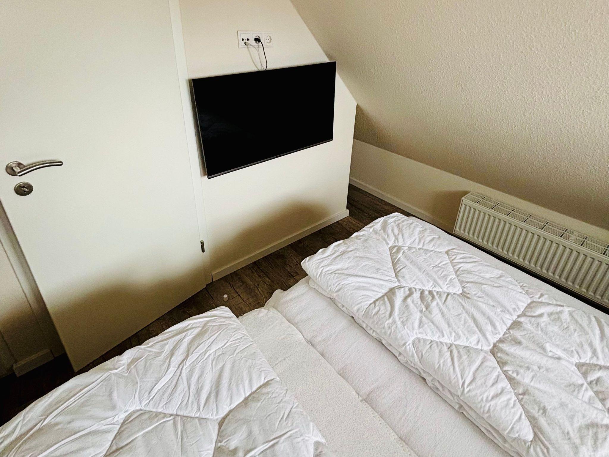 Die Wohnung verfügt über drei Schlafzimmer, von denen eines mit einem TV und CD-Player ausgestattet ist. Ein modernes Badezimmer mit Dusche sowie ein zusätzliches Gäste-WC sorgen für Komfort und Privatsphäre. Der gemütliche Wohn- und Essbereich lädt zum Verweilen ein, während die voll ausgestattete Küche alle Annehmlichkeiten für eine unkomplizierte Selbstversorgung bietet.