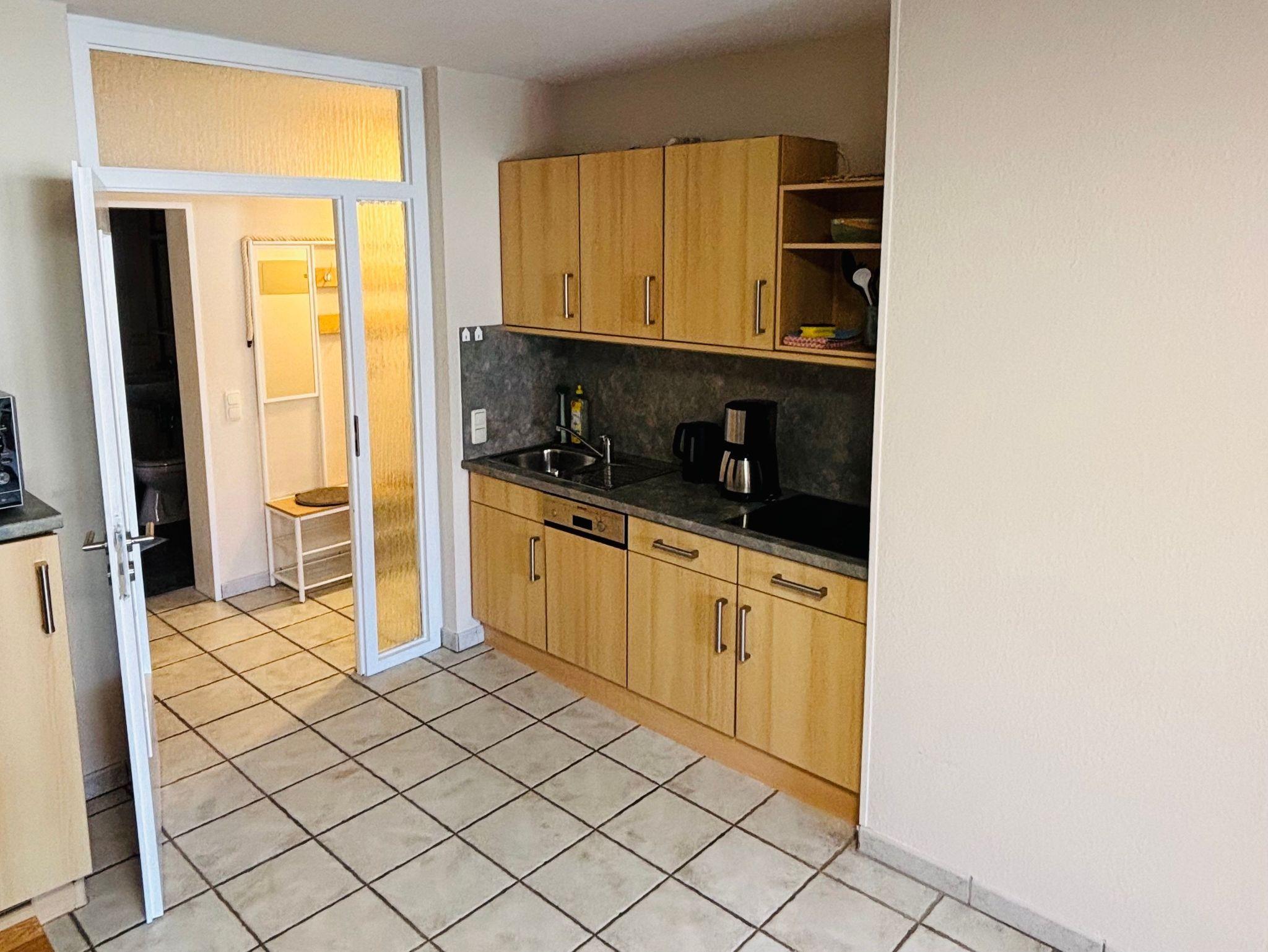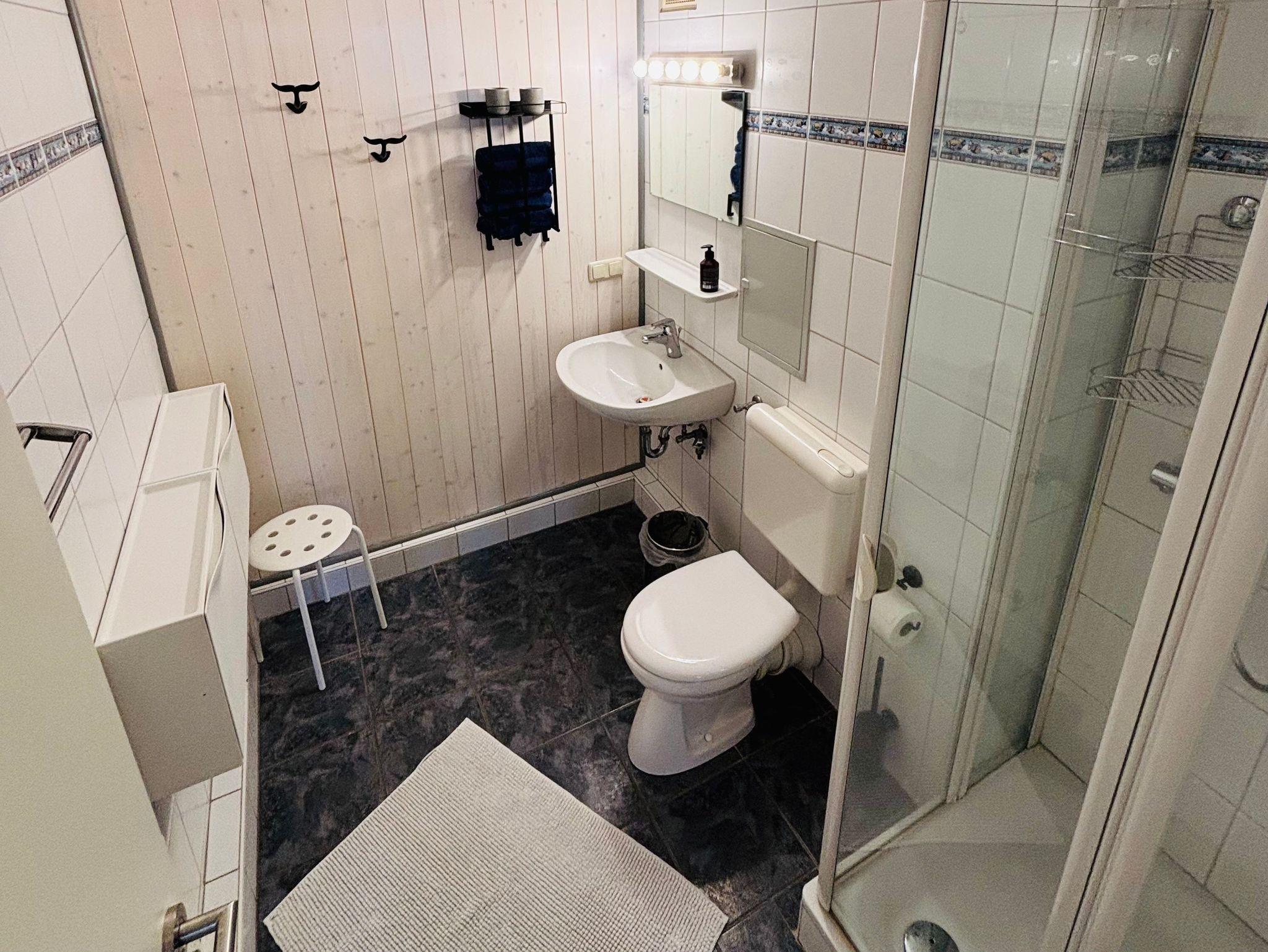 Ein modernes Duschbad mit WC sowie ein großzügiger Wohnraum mit integrierter Küchenzeile erwarten Sie. Anstelle eines klassischen Backofens steht Ihnen ein praktischer Airfryer zur Verfügung. Zudem ist die Küche mit einer Spülmaschine, einer Dunstabzugshaube und einer Mikrowelle ausgestattet. Ein Herd, Toaster, Wasserkocher, Kaffeemaschine und ein Kühlschrank sind natürlich ebenfalls vorhanden.