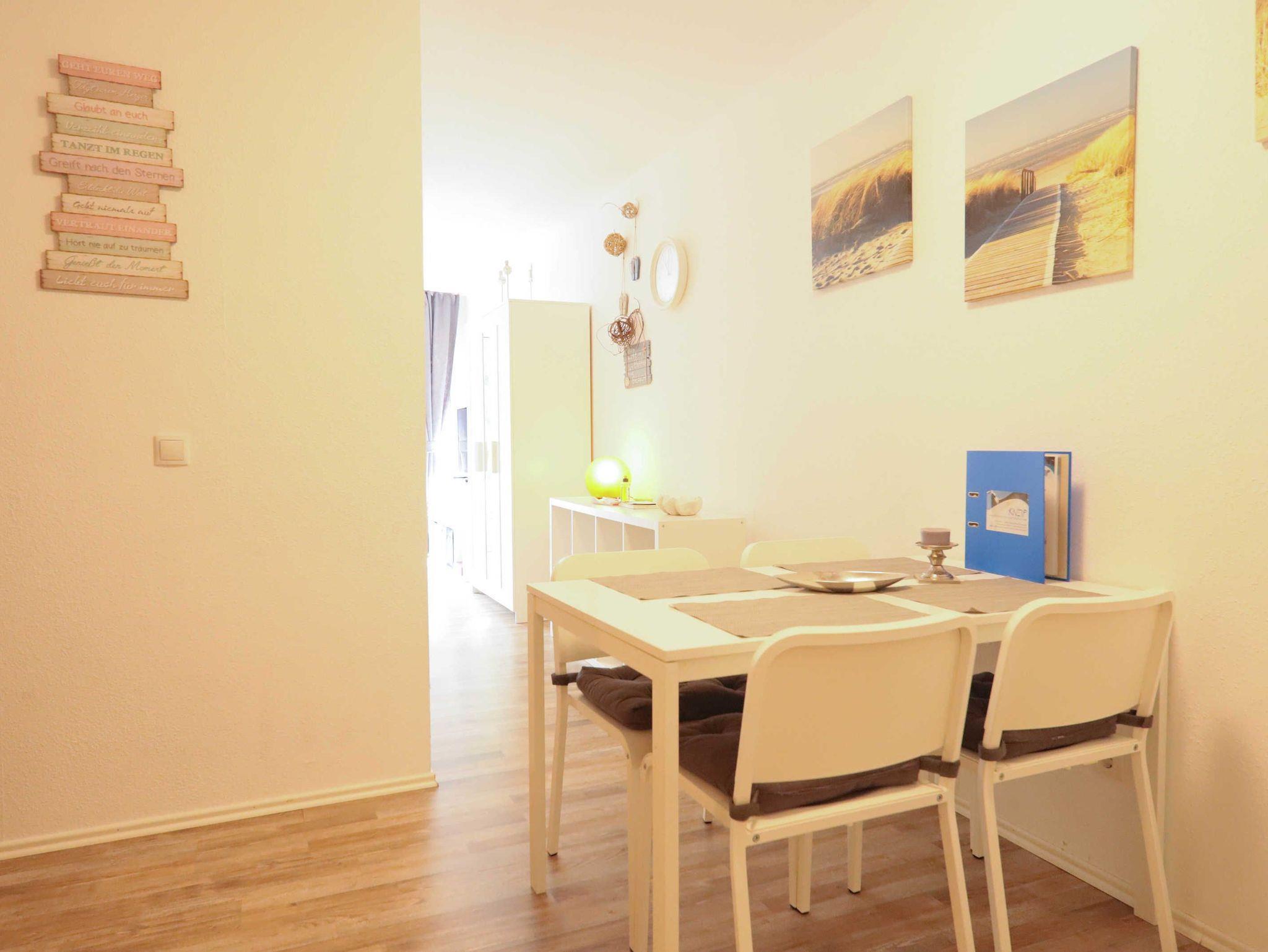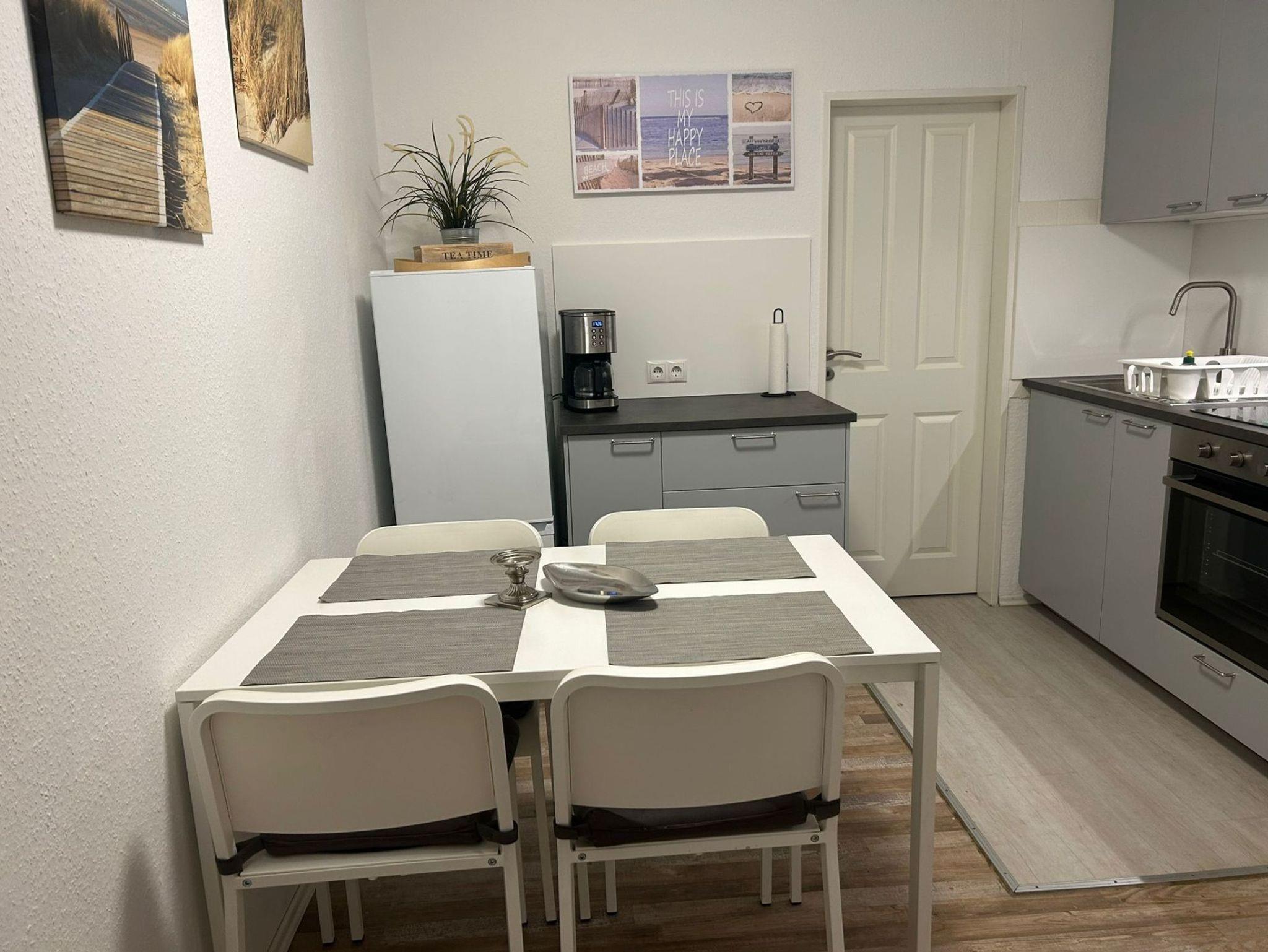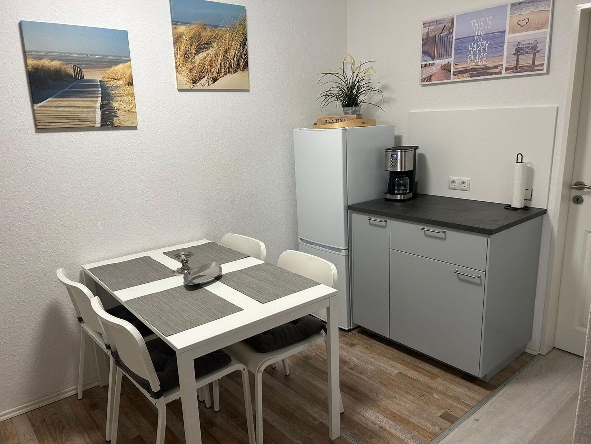 Helle Ferienwohnung Strandlust in Horumersiel mit moderner Küche, Terrasse und WLAN, nur 500 m vom Strand entfernt.