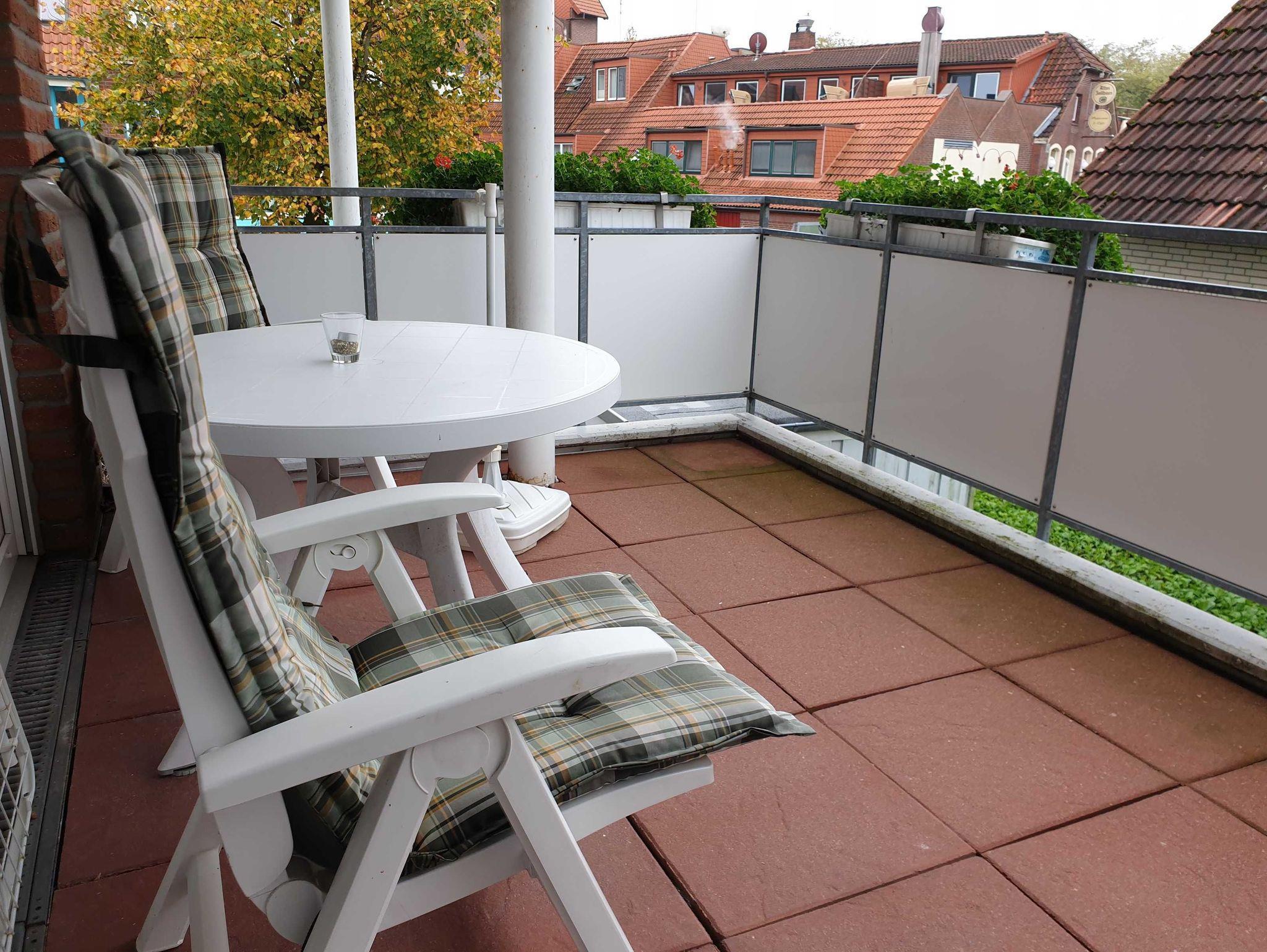 Stilvolle Ferienwohnung mit großem Balkon, moderner Küche und WLAN, nur 300 m vom Strand in Horumersiel entfernt.