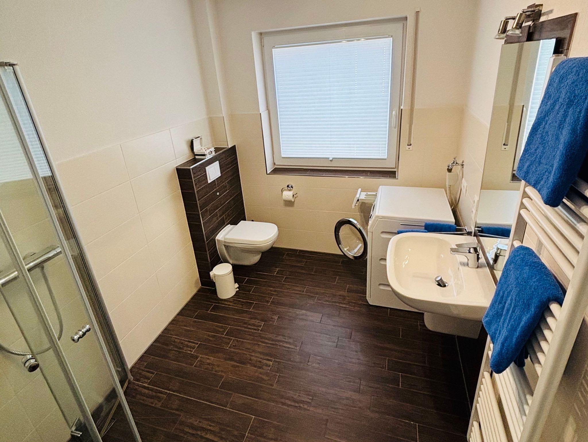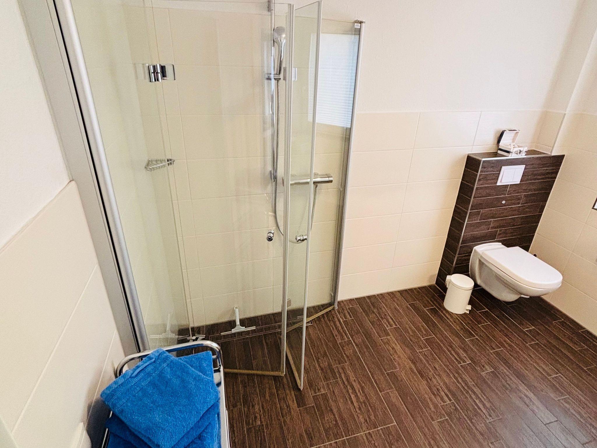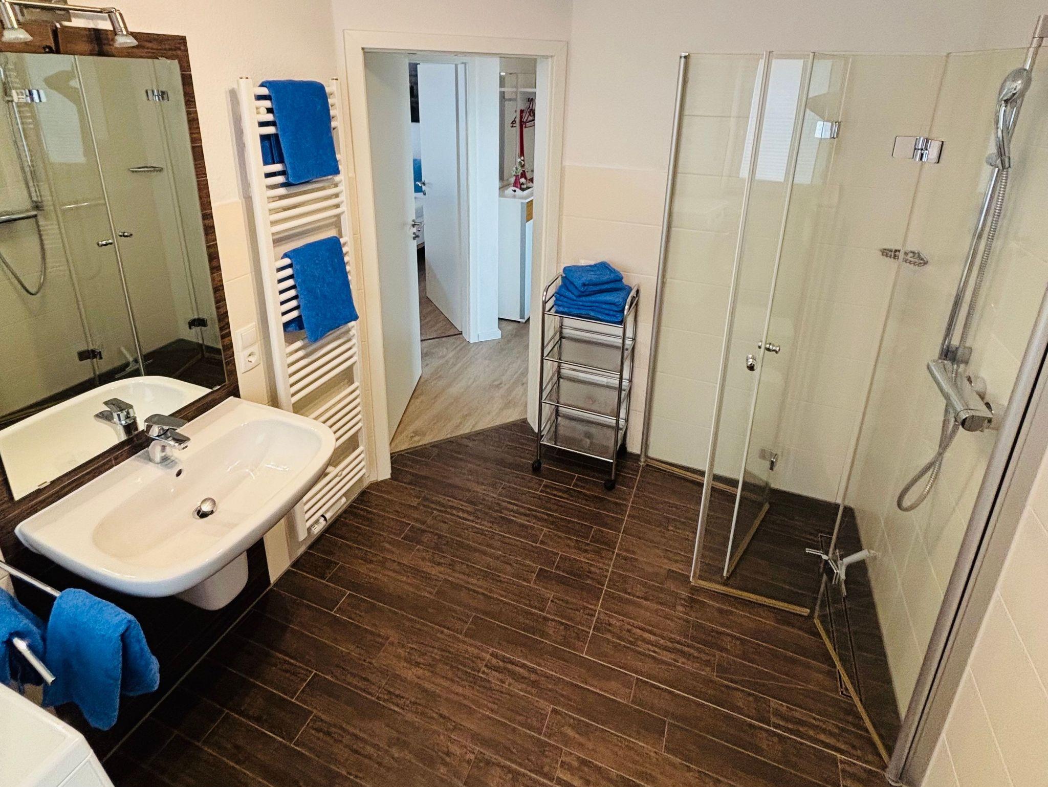Das Badezimmer mit Dusche ist mit zusätzlichem Interieur wie einem Fön ausgestattet, um Ihren Aufenthalt noch komfortabler zu gestalten. Zudem haben Sie die Möglichkeit, die wohnungsinterne Waschmaschine zu nutzen.