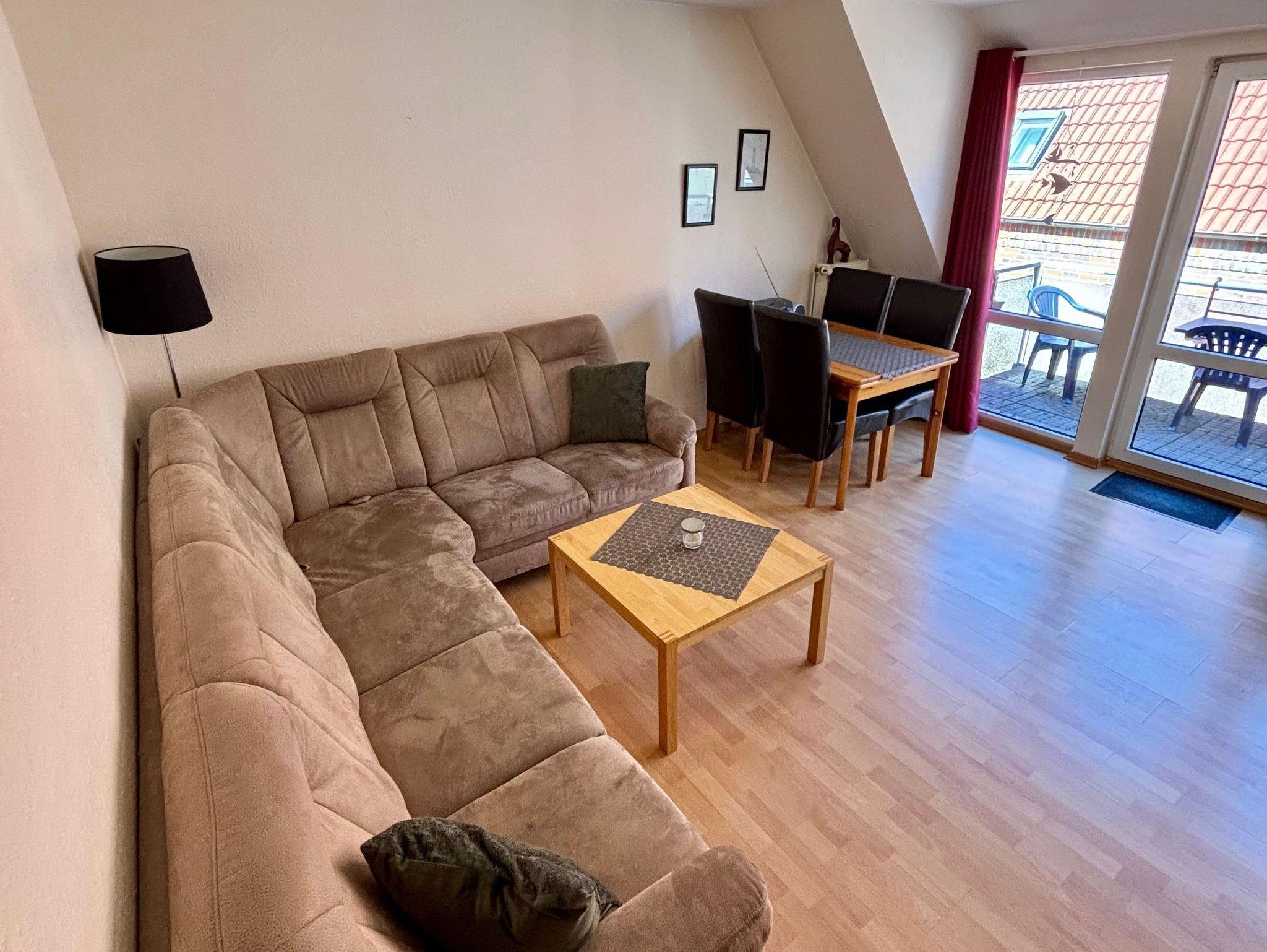 • Gemütlicher Wohnbereich mit Couch und Couchtisch