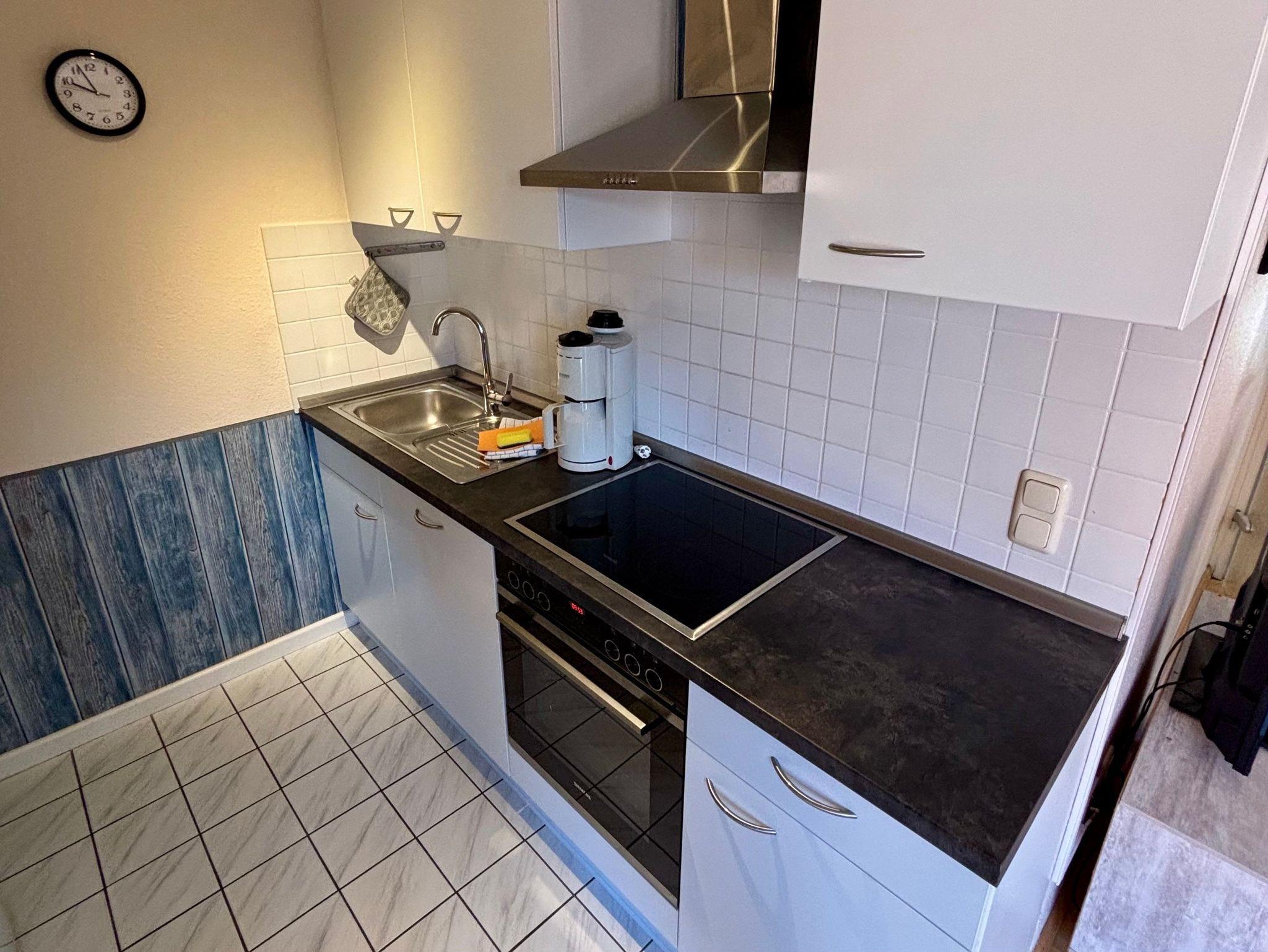 • Offene, voll ausgestattete Küche mit Ceranfeld, Mikrowelle, Kaffeemaschine, Toaster etc.