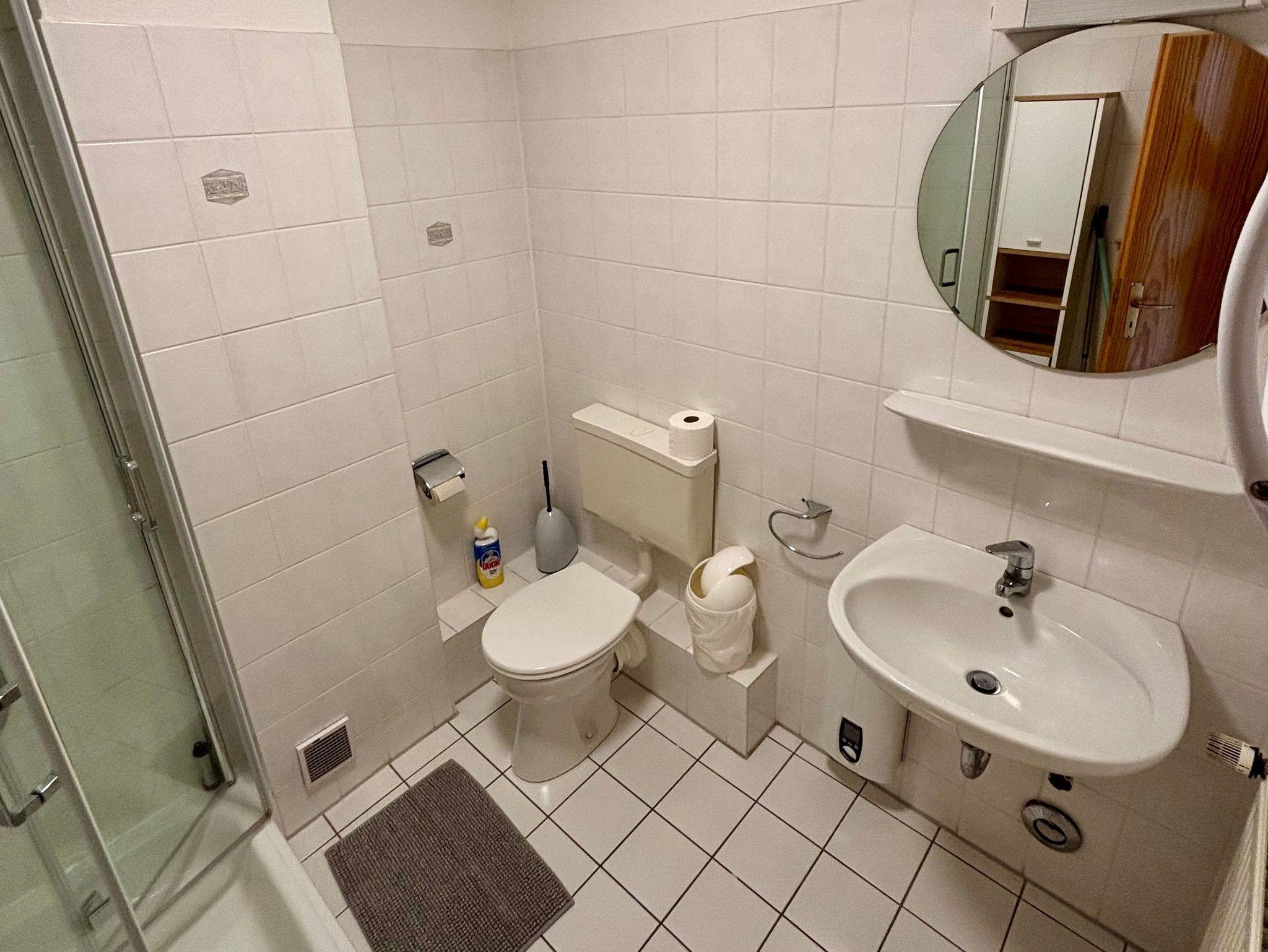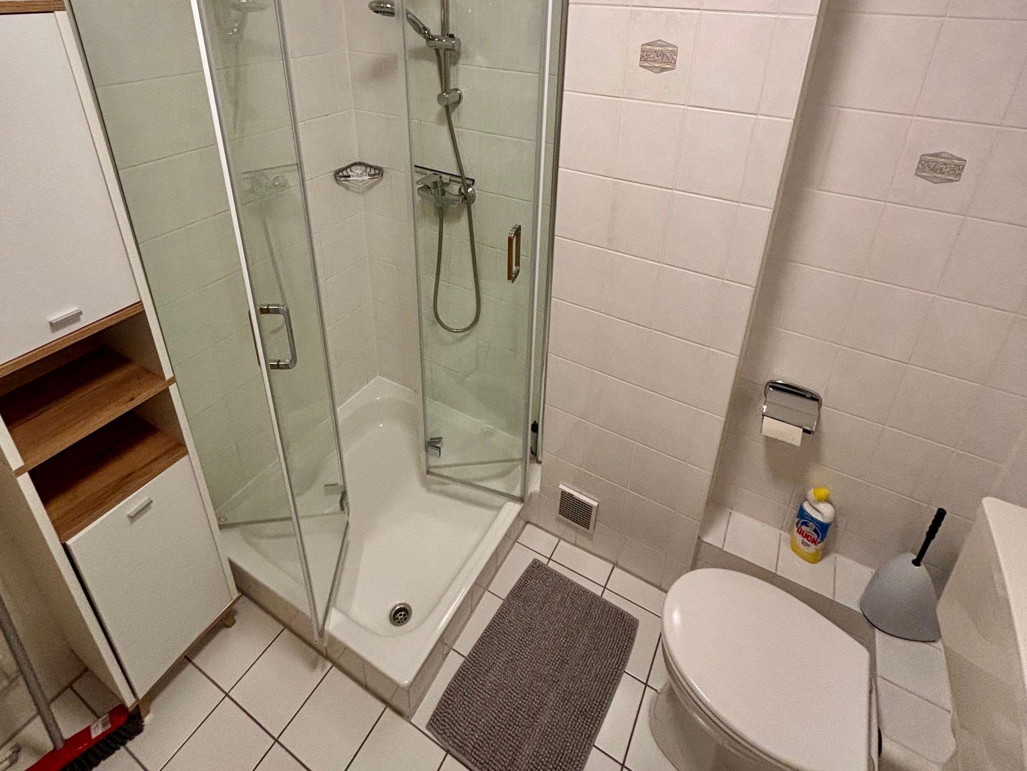 • Modernes Badezimmer mit Dusche und Haartrockner