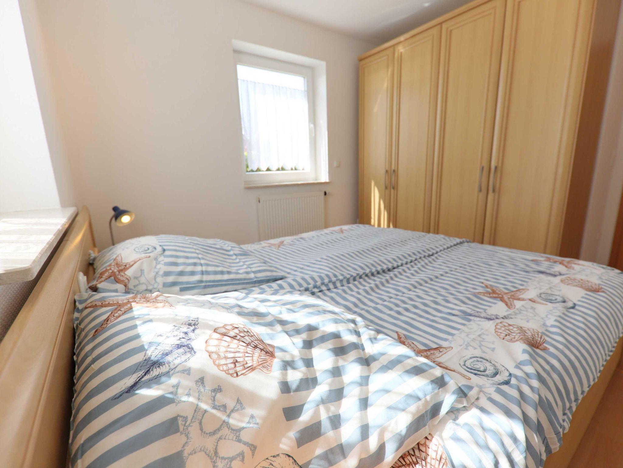 Suchen Sie Ruhe pur und möchten trotzdem nahe am Strand sein? Dann sind Sie hier an der richtigen Adresse! Genießen Sie Ihren Urlaub in einer liebevoll und modern eingerichteten Komfort-Ferienwohnung in sehr ruhiger Lage. Die Ortsmitte mit allen Einkaufsmöglichkeiten für den täglichen Bedarf, Cafés und Restaurants erreichen Sie zu Fuß in ca. 5 Minuten. Zum Strand sind es ca. 50m, zur Frieslandtherme ca. 60m und zum Kurmittelhaus ca. 100m. Die Unterkunft (ca. 56m²) ist für 4 Personen ausgestattet, Wohn-, Ess- u. Kochbereich: gemütliche Polstersitzgruppe, Fernseher und Radio/CD-Player, Essgruppe, Einbauküche, Herd, Backofen, Mikrowelle, Kühlschrank, kleiner Gefrierschrank, Geschirrspülmaschine, Kaffemaschine, Toaster, etc. komplett ausgestattet. Vom Wohn/Koch- und Essbereich gelangen Sie auf die Terrasse mit ansprechenden Gartenmöbeln. Beide Schlafzimmer wurden mit Doppelbett, Laminat und Schrank ausgestattet. PKW-Stellplatz direkt an der Wohnung und eigener Fahrradabstellraum. Nutzung zusammen mit der Wohnung im Obergeschoss: Waschmaschine und Trockner im Haus (kostenlose Nutzung); überdachter und windgeschützter Grillplatz mit gemauertem Grill im Garten; hinter dem Haus großer Garten zum Sonnen oder spielen für die Kinder.