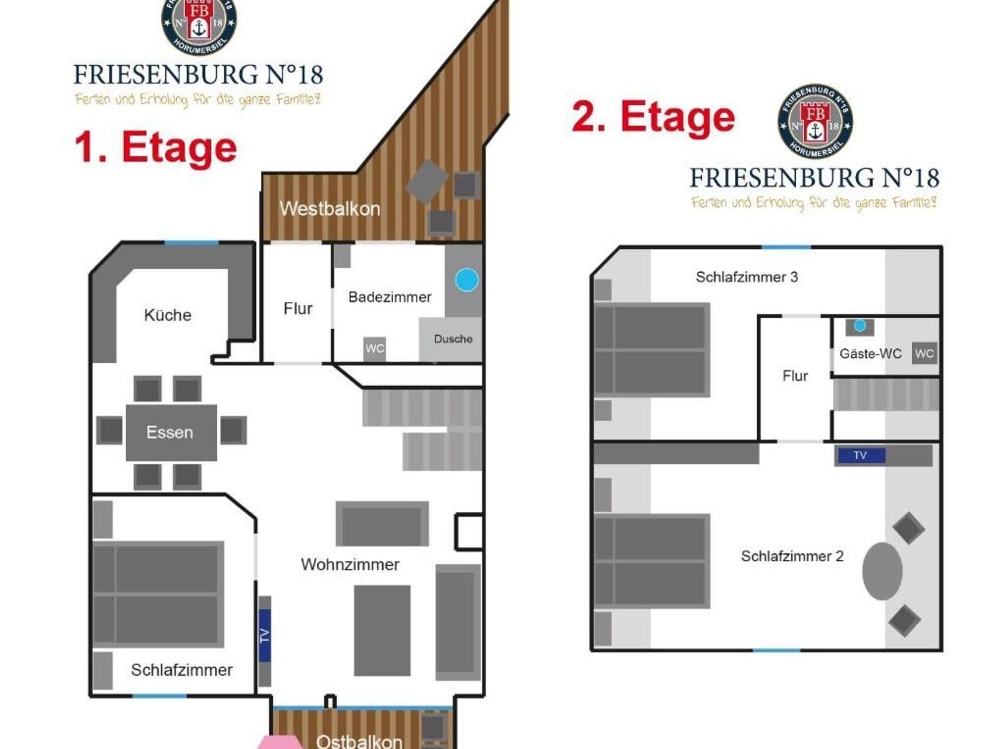 Exklusive Ferienwohnung Friesenburg No°18 in Horumersiel mit 97 m², 2 Balkonen und hochwertiger Ausstattung nahe Thalasso Meeresspa.