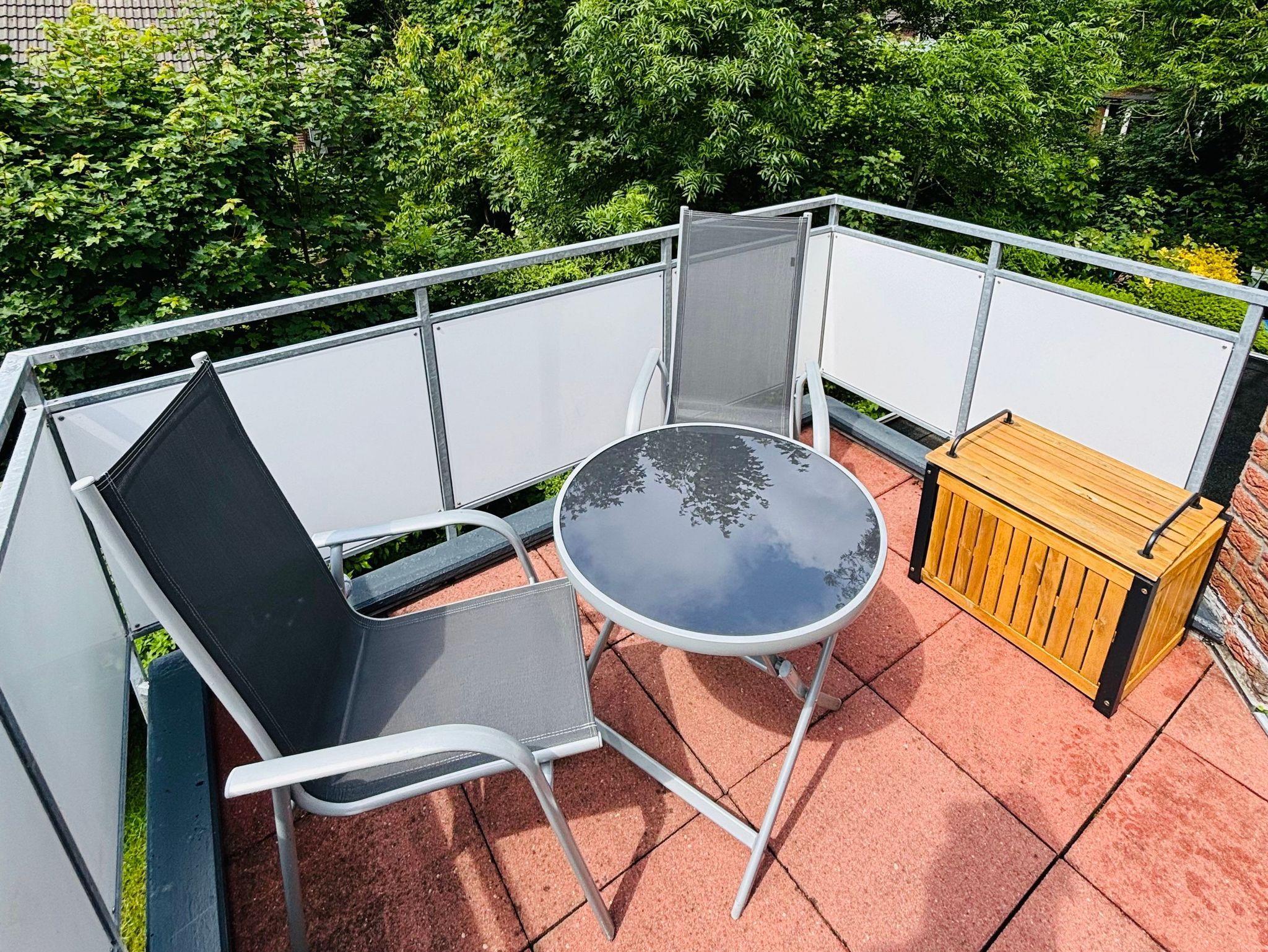 Vom Balkon aus haben Sie einen wunderschönen Blick in die umliegenden Gärten mit altem Baumbestand. Durch die südwestliche Ausrichtung können Sie die Sonne bis in den Abend hinein genießen. Das Schlafzimmer liegt in nördlicher Richtung und ist auch an heißen Sommertagen immer noch angenehm temperiert. Auf dem großzügigen Balkon finden Sie zudem einen hochwertigen Elektrogrill von Weber.