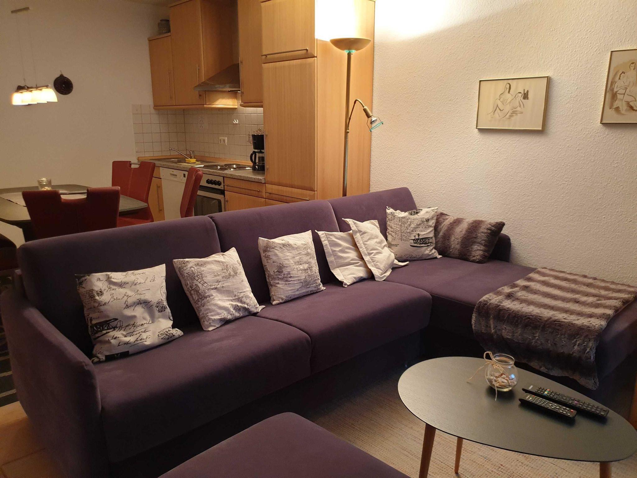 Die schöne Wohnung mit befindet sich im Parterre eines Appartementhaus und ist für 3 Personen geeignet. Sie besteht aus einem Wohnzimmer mit Küchenzeile, 2 separaten Schlafzimmern, Duschbad, Abstellraum und Terrasse. Die Küche ist komfortabel eingerichtet mit einem Cerankochfeld, Backofen, Kühlschrank, Spülmaschine, Kaffeemaschine, Toaster, Warmwasserbereiter und umfangreichem Geschirr. Außerdem sind ein TV-Flachbildschirm, sowie eine Radioanlage vorhanden. Die Terrasse mit Gartenmöbeln lädt zum Relaxen und abends zum Genießen der guten Luft ein.