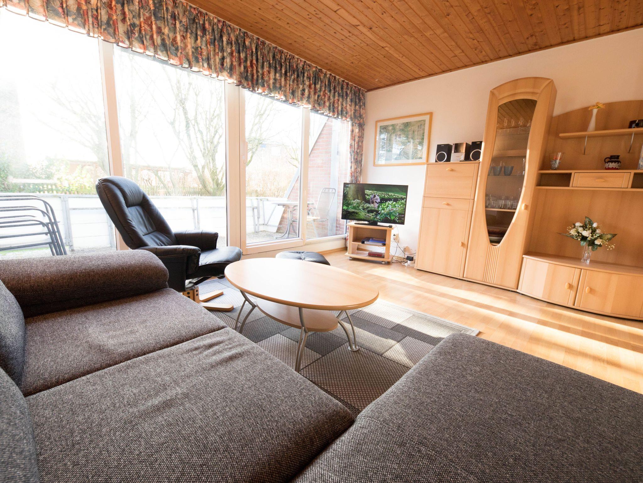 Die großzügig geschnittene, ebenerdige Ferienwohnung Silbermöwe verfügt über 55 m² Wohnfläche und befindet sich nur wenige Gehminuten vom Strand entfernt, in Friesenhörn - einem Ortsteil von Horumersiel. Sie bietet drei Personen und einem Kleinkind ausreichend Platz für einen erholsamen Urlaub. Die Ferienwohnung verfügt über ein Schlafzimmer mit Doppelbett und Fernseher. Ein Kinderreisebett und -stuhl ist vorhanden. Das zweite Schlafzimmer ist mit einem Einzelbett ausgestattet, verfügt über ein Schreibtisch, Kleiderschrank und Musikanlage. Das helle Wohnzimmer mit Eckgarnitur und Ausziehsofa, großem Flachbildfernseher und Musikanlage hat einen direkten Zugang auf die Süd-Terrasse und dem hinteren Rasengrundstück. Die offene Küche ist sehr gut ausgestattet und verfügt über einen Geschirrspüler, Kühlschrank mit Gefrierfach, Backofen mit vier Kochfeldern, Kaffeemaschine, Wasserkocher und Toaste sowie einer Mikrowelle. Das Badezimmer mit Fenster ist mit Dusche und WC ausgestattet. Alle Räume können durch Außenrollos komplett abgedunkelt werden. Der Fußboden ist im Wohnzimmer und den Schlafzimmern mit Laminat ausgelegt, des weiteren verfügt die Wohnung über Satelliten-TV und W-LAN. Für Ihre Wertsachen steht Ihnen ein Möbeltresor zur Verfügung. Ein eigener Parkplatz ist direkt am Haus vorhanden, Fahrräder können bequem an der Hauswand geparkt und abgeschlossen werden. Der Strand ist nur wenige Gehminuten entfernt, ebenso ist der Ort in wenigen Gehminuten über den Kurpark erreichbar. Alle Einrichtungen des täglichen Bedarf sind in Horumersiel vorhande