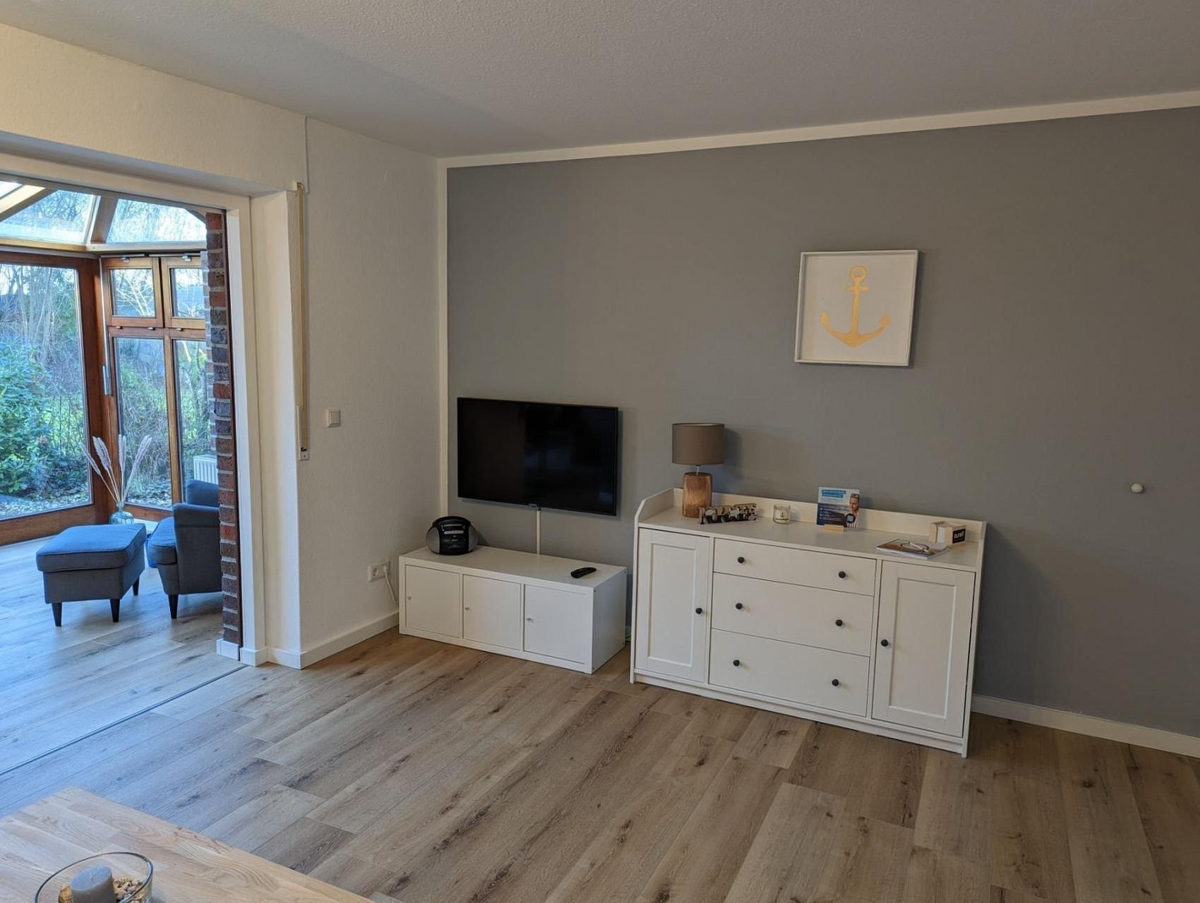 Modern renovierte Ferienwohnung mit Wintergarten und Garten nahe Meer in Horumersiel, ideal für Familien und Ruhesuchende.