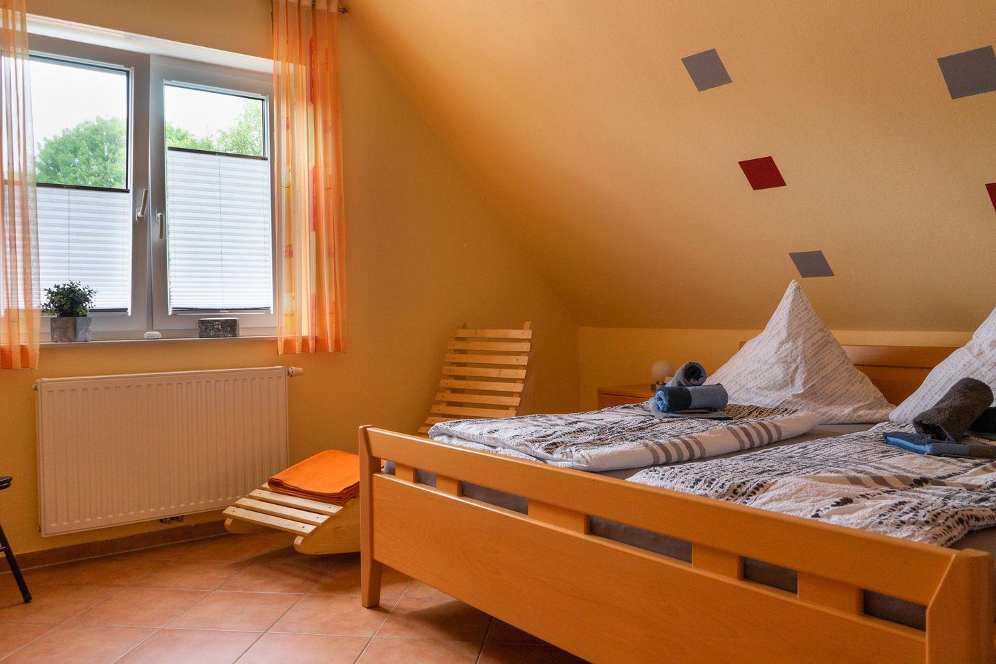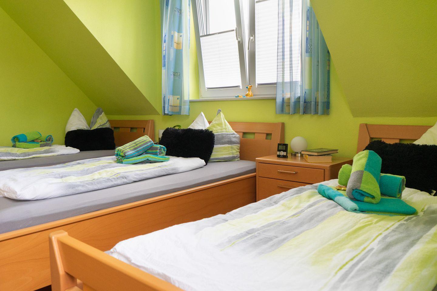 Für erholsame Nächte stehen Ihnen zwei Schlafzimmer im Obergeschoss zur Verfügung. Ein Schlafzimmer beeindruckt mit einem Doppelbett, einem Kinderreisebett und einer Farblichttherapie, während das andere Zimmer mit drei Einzelbetten ausgestattet ist. Die Fenster sind mit Jalousien und Insektenschutzgittern versehen.