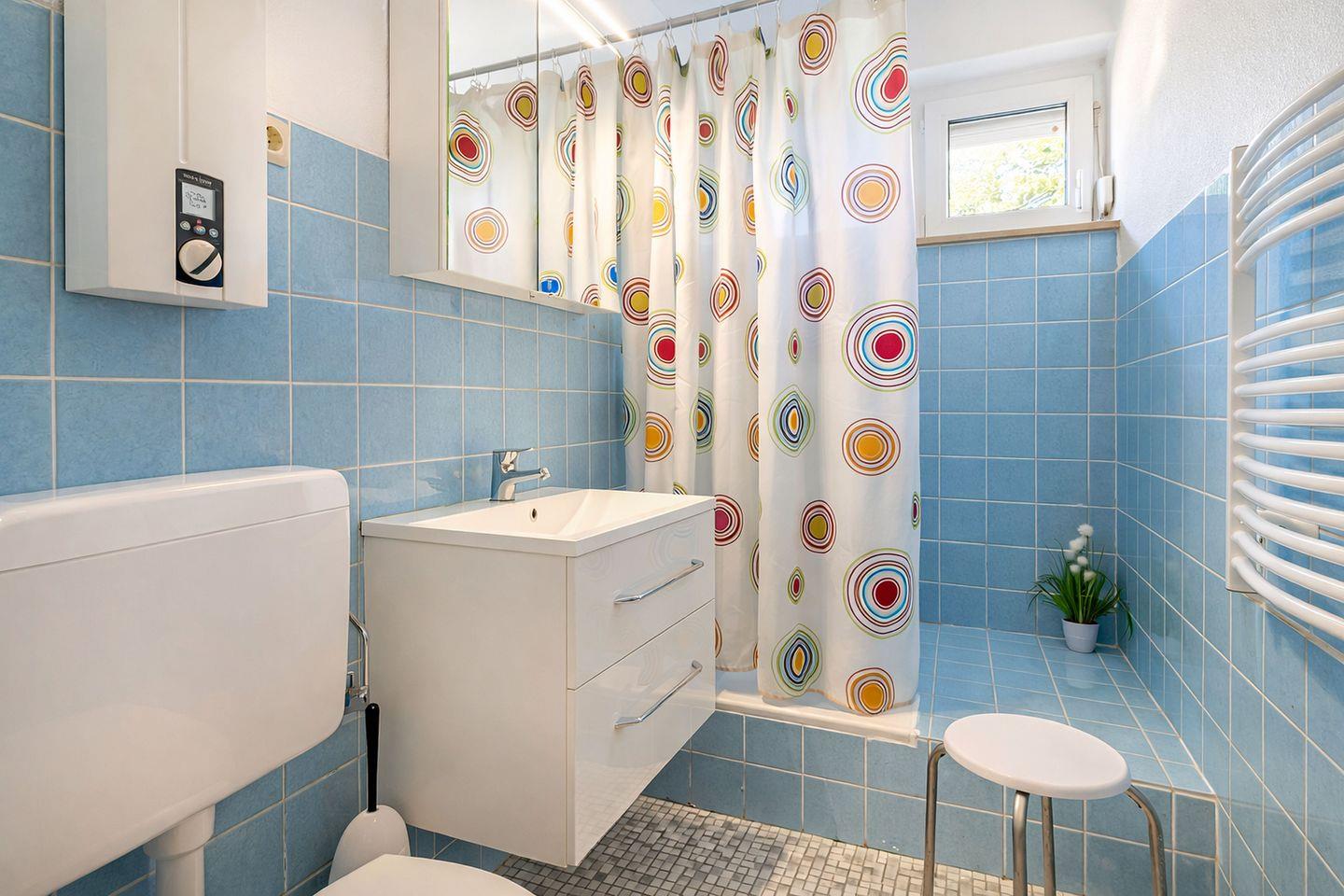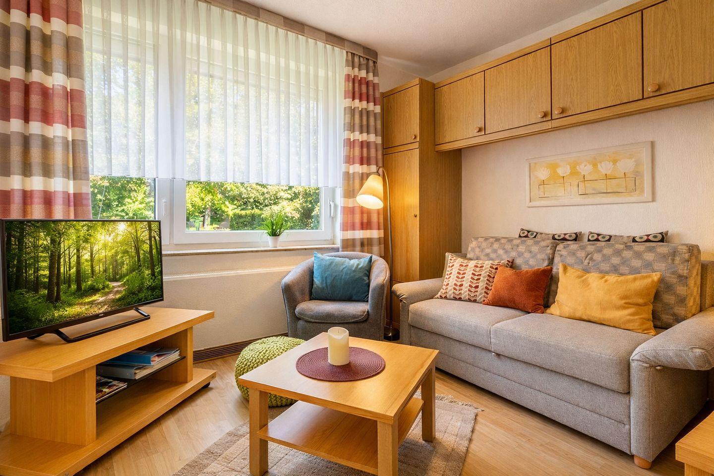 Das Schlafzimmer mit komfortablem Doppelbett lässt sich durch eine Schiebetür vom Wohnbereich abtrennen und bietet somit eine angenehme Rückzugsmöglichkeit. Im Wohnbereich laden ein gemütliches Sofa mit Schlaffunktion sowie ein bequemer Fernsehsessel zu entspannten Stunden ein. Ein Fernseher mit Satellitenempfang sorgt für Unterhaltung, auch an ruhigeren Abenden. Das Badezimmer verfügt über eine Dusche sowie ein WC. Vom Schlafzimmer aus gelangen Sie direkt auf den Balkon, der an sonnigen Tagen zum Frühstück im Freien oder zum entspannten Verweilen einlädt. Ihnen steht während Ihres Aufenthaltes ein kostenloser WLAN Zugang zur Verfügung.