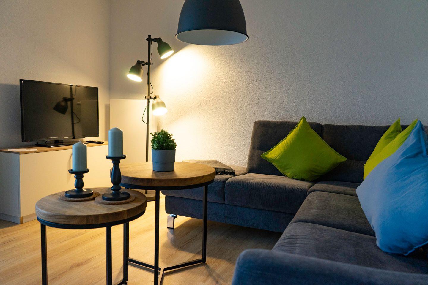 Genießen Sie einen erholsamen Urlaub in unserer gut ausgestatteten Erdgeschosswohnung. Mit 55 qm Wohnfläche, sonniger Terrasse und Platz für bis zu 4 Personen sowie ein Kinderreisebett bietet sie Komfort und Gemütlichkeit. Der großzügige Wohn-, Koch- und Essbereich ermöglicht direkten Terrassenzugang. Die voll ausgestattete Küche, gemütliche Schlafzimmer und ein modernes Bad sorgen für Wohlfühlatmosphäre. Nichtraucherwohnung mit PKW-Stellplatz und LTE-Internet (begrenztes Datenvolumen).