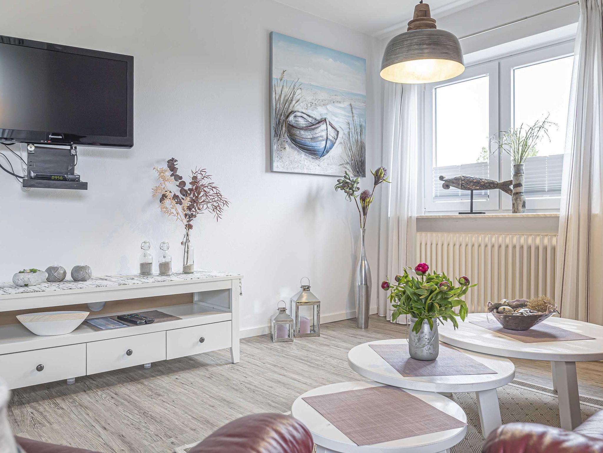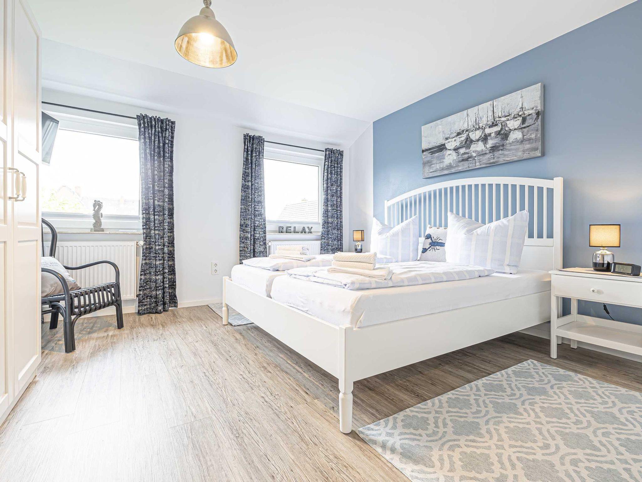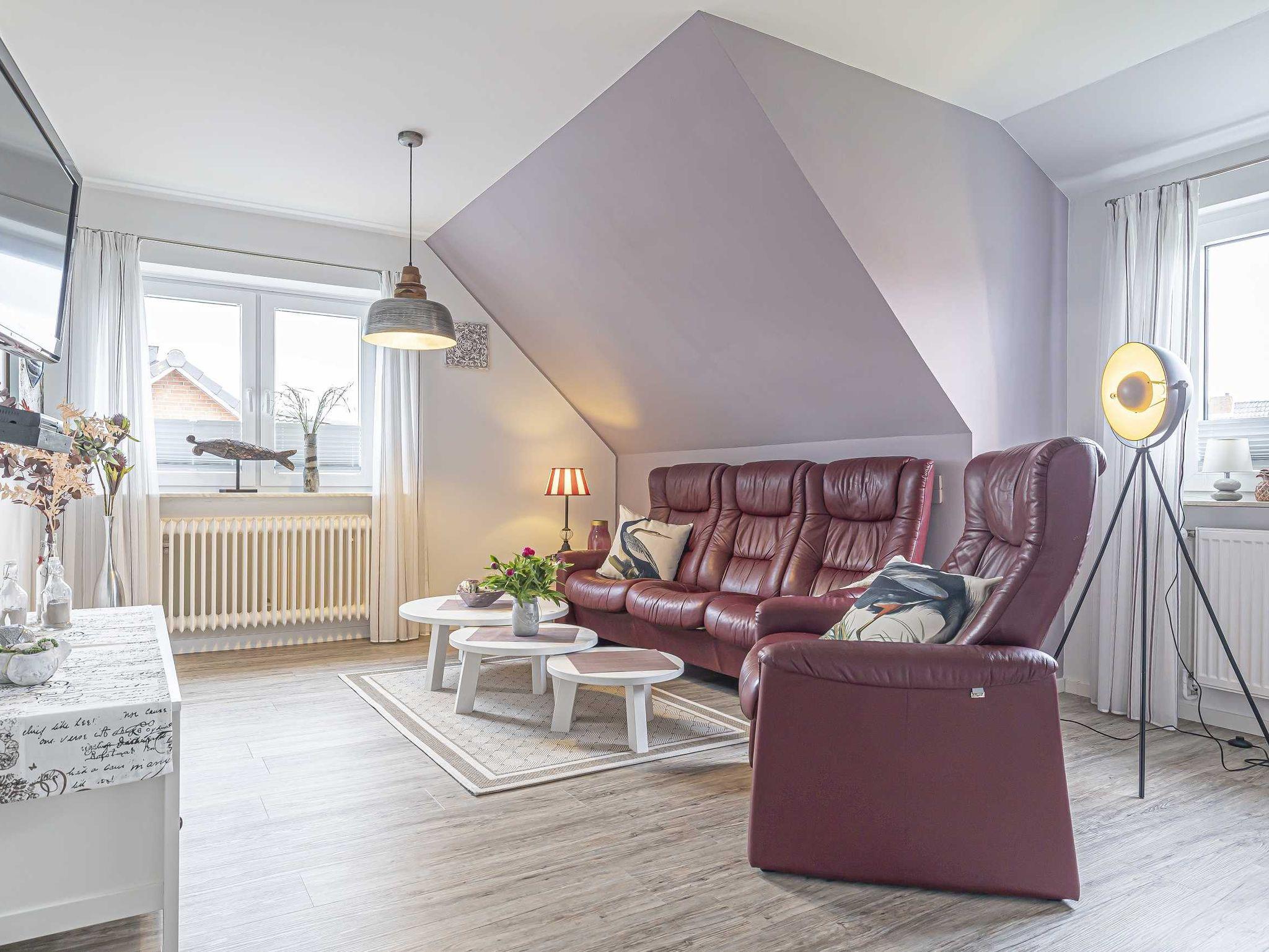 Das Apartment bietet genügend Platz für bis zu vier Personen (+ Kleinkind). Neben zwei Schlafzimmern, eins davon mit einem Doppelbett 1,80m x 2,00m ausgestattet, sowie das zweite Zimmer mit einem komfortabler, ausziehbaren Schlafkoje. Der Rest der neu gestalteten Wohnung gliedert sich in einer modernen Einbauküche mit großzügigem, offenen Essbereich sowie einem schönen Duschbad. Die frische Nordseebrise genießen Sie auf einer großzügigen, exklusiven Dachterrasse.
