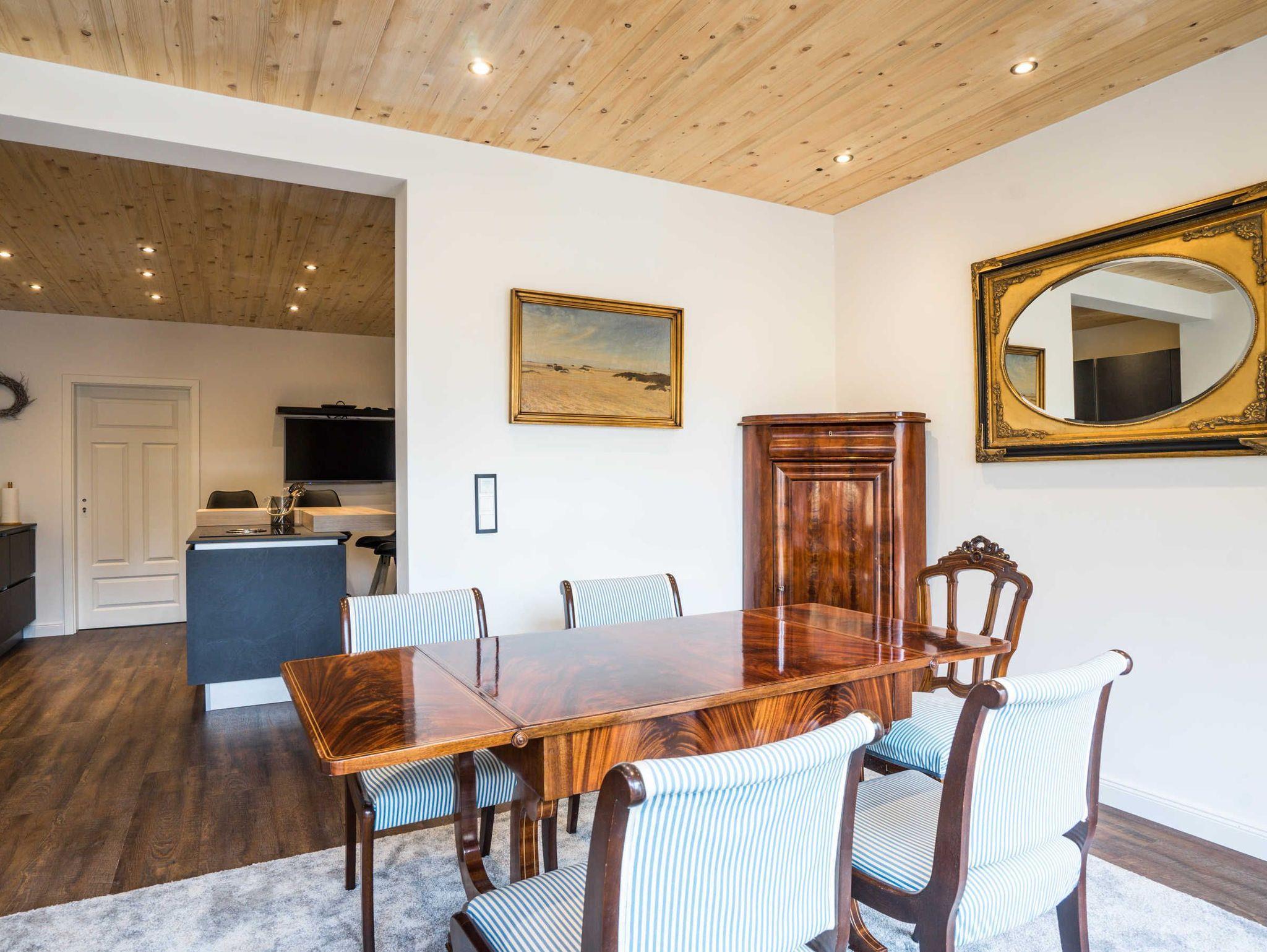 Die offene Küche mit Tresen und 4 Barhockern ist mit Geschirrspüler, Backofen, Induktionskochfeld mit 4 Herdplatten, Kühlschrank mit Gefrierfach, Filterkaffeemaschine (Filtergröße 4), Wasserkocher und Toaster eingerichtet. Das offene Wohnzimmer lädt mit einem Flachbild-TV (Kabel) und großem Esstisch zum Verweilen ein. Die Wohnung verfügt über 3 Schlafzimmer, die mit einem Boxspring-Bett, einem Schlafsofa und gemütlichen Schlaf-Alkoven ausgestattet sind: Schlafzimmer 1 mit 180 x 200 Matratze und TV, Wohn-/Schlafzimmer 2 mit 180 x 200 und TV, Schlafalkoven 3 mit 1,50 x 200. Die Wohnung wird für deine Anreise mit Bettwäsche, Handtüchern und Seife ausgestattet.