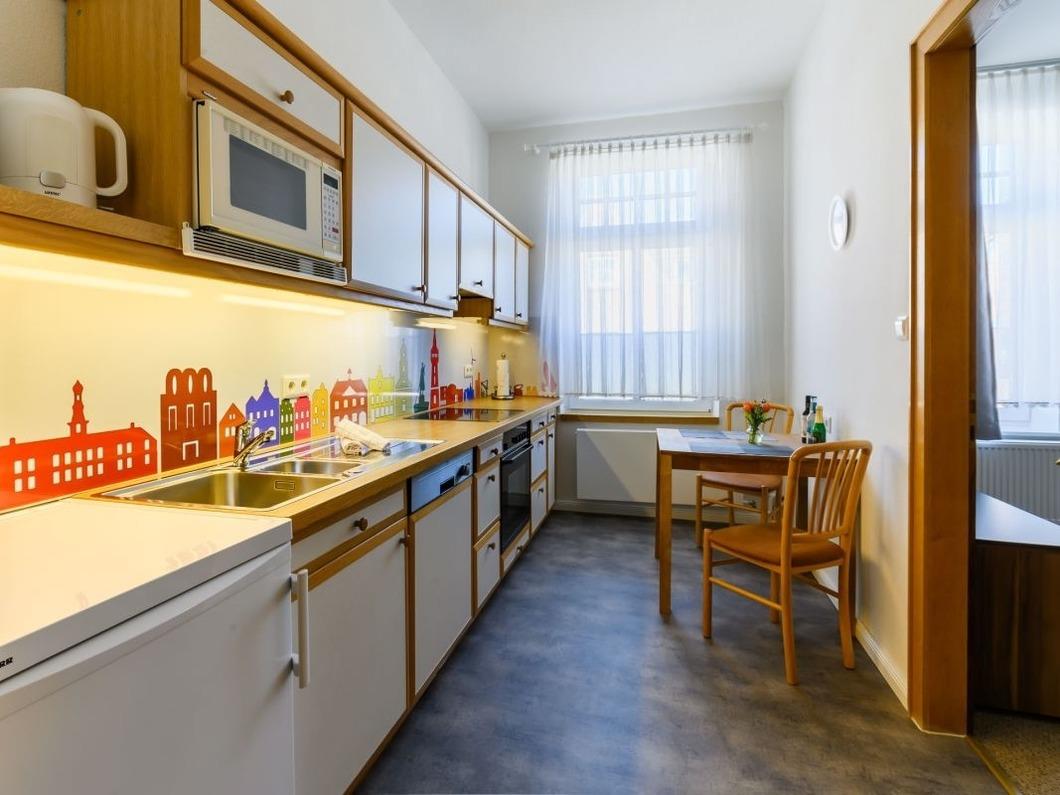 Die Ferienwohnung liegt im 1. Obergeschoß der Stadthauses. Die ca. 35qm große Wohnung besteht aus einem kombinierten Wohn-und Schlafraum, einer vollausgestattenen Küche mit Essplatz und einem Duschbad. Für Ihr Auto und Ihre Räder stehen Stellplätze bereit.