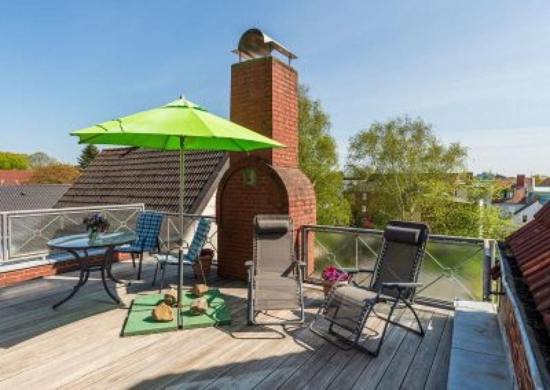Gemütliche 30m² Ferienwohnung mit Terrasse im Herzen von Husum, nahe Hafen und Stränden.