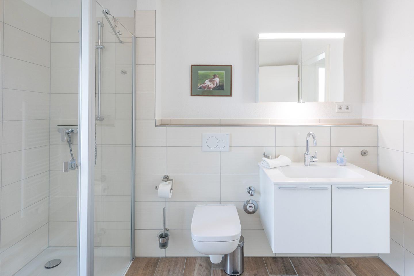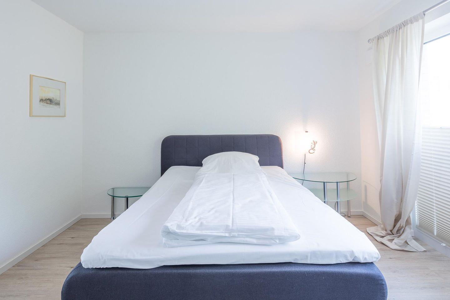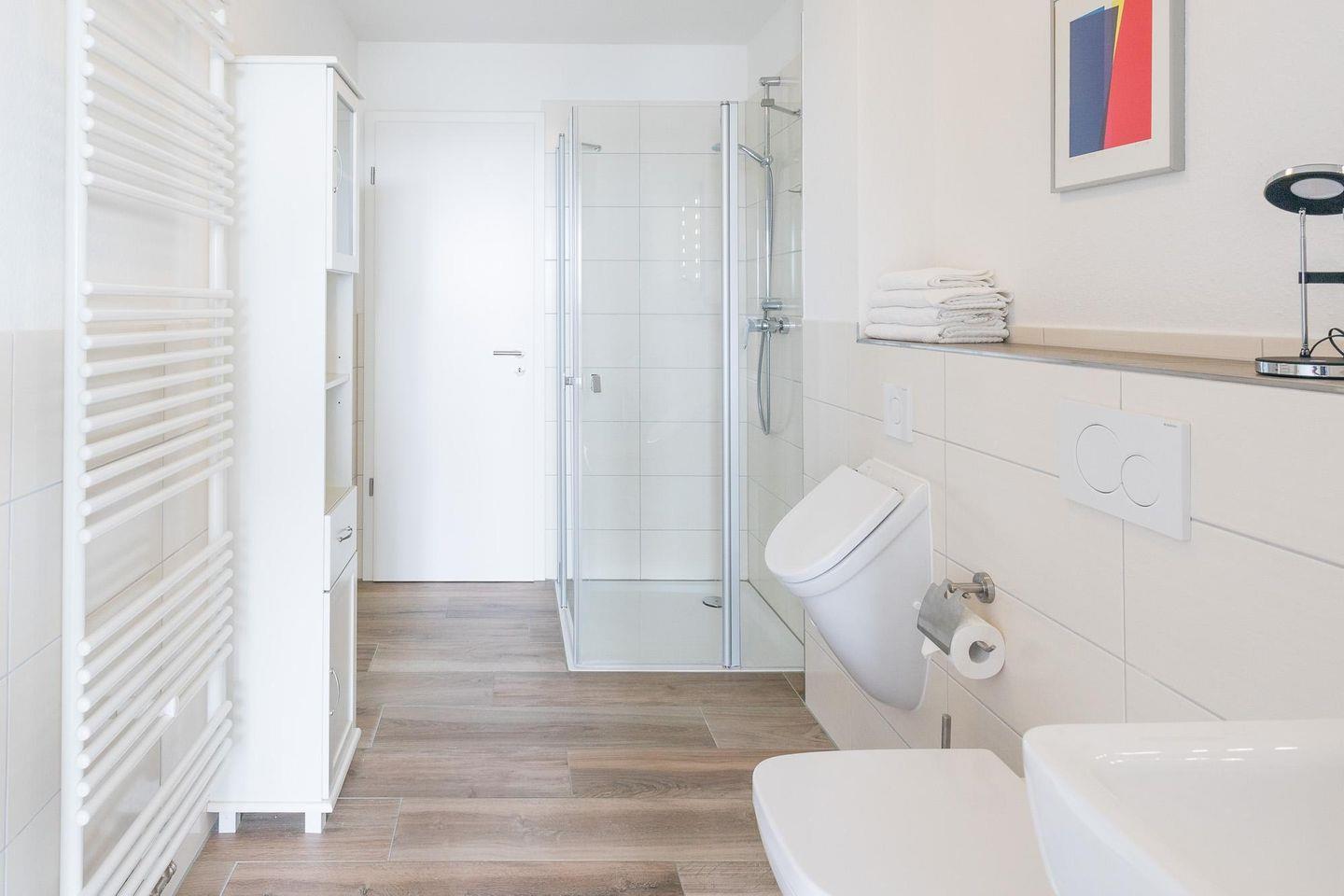 Die Ferienwohnung mit ca. 110 qm Wohnfläche befindet sich im 3. OG und ist mit einem Fahrstuhl barrierefrei erreichbar, der direkt in die Wohnung fährt. Die offene Küche ist mit Geschirrspüler, Backofen, Induktionskochfeld mit 4 Herdplatten, Kühlschrank mit Gefrierfach, Filterkaffeemaschine (Filtergröße 4), Wasserkocher und Toaster eingerichtet. Das offene Wohnzimmer lädt mit einem Flachbild-TV (Kabel) zum Verweilen ein. Die Wohnung verfügt über zwei Schlafzimmer, die jeweils mit einem Boxspring-Bett ausgestattet sind: Schlafzimmer 1 mit 180 x 200 Matratze und Smart-TV (Nutzung mit eigenem Account möglich, kein Kabelanschluss – der Fernseher funktioniert app-basiert wie ein Tablet), Schlafzimmer 2 mit 140 x 200 und Schreibtisch. Die Wohnung bietet Ihnen zwei Duschbäder.