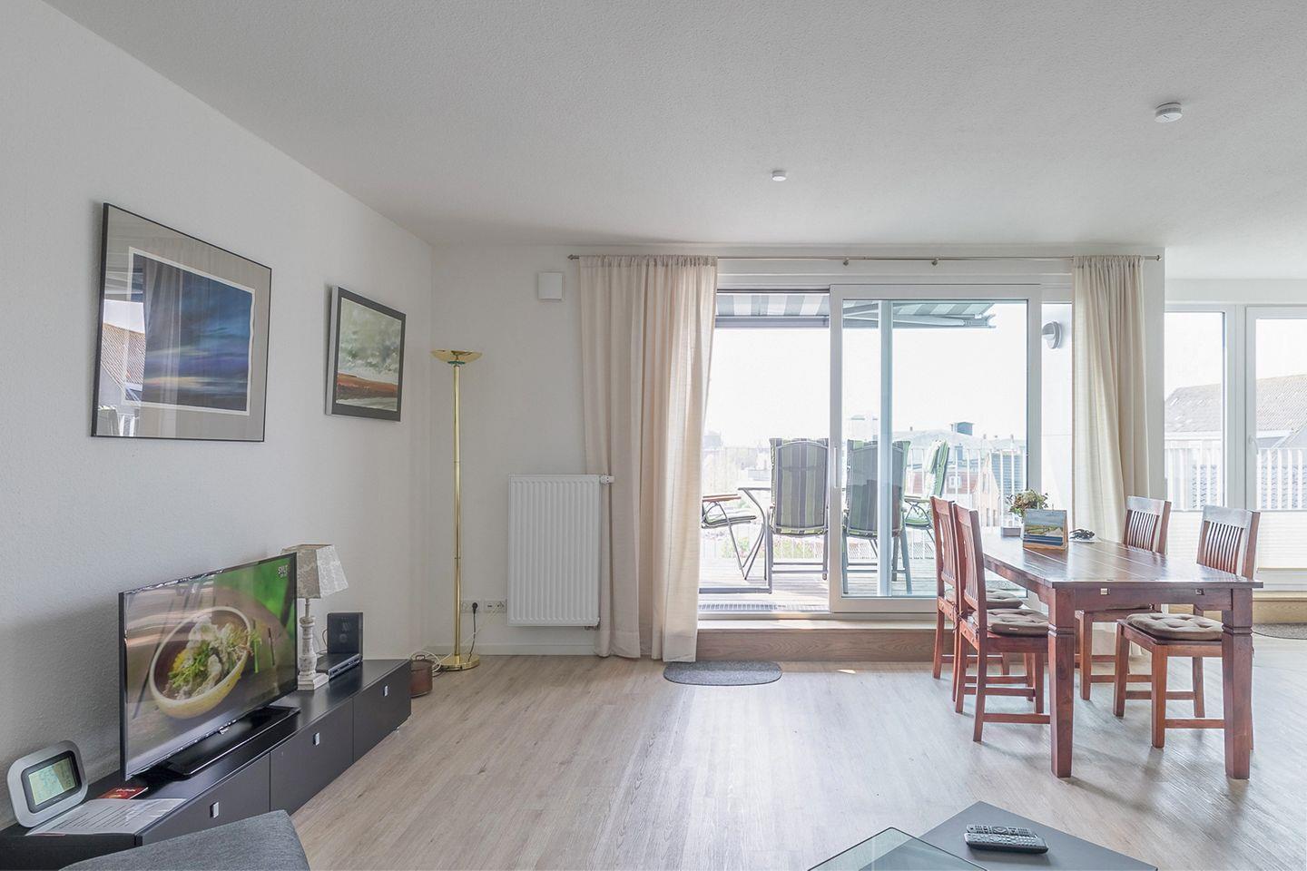 Penthouse-Ferienwohnung in Husum mit Schlossblick, Dachterrasse und barrierefreiem Zugang – zentral und komfortabel für Ihren Urlaub.