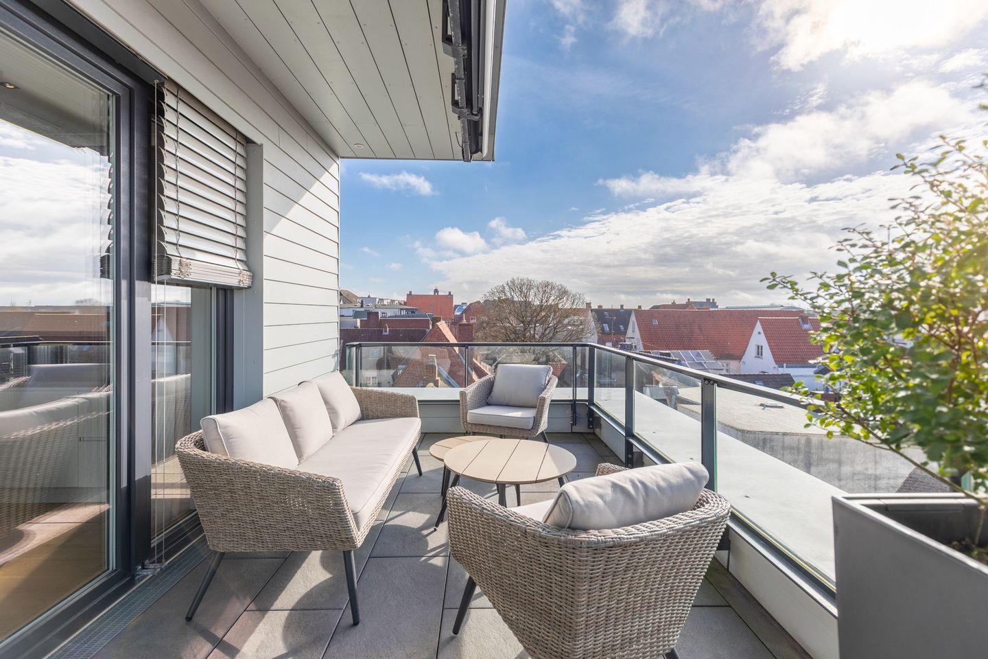 Auf der großen Dachterrasse können Sie den Tag gemütlich auf komfortablen Gartenmöbeln ausklingen lassen und dabei den schönen Sonnenuntergang über der Nordsee beobachten.
