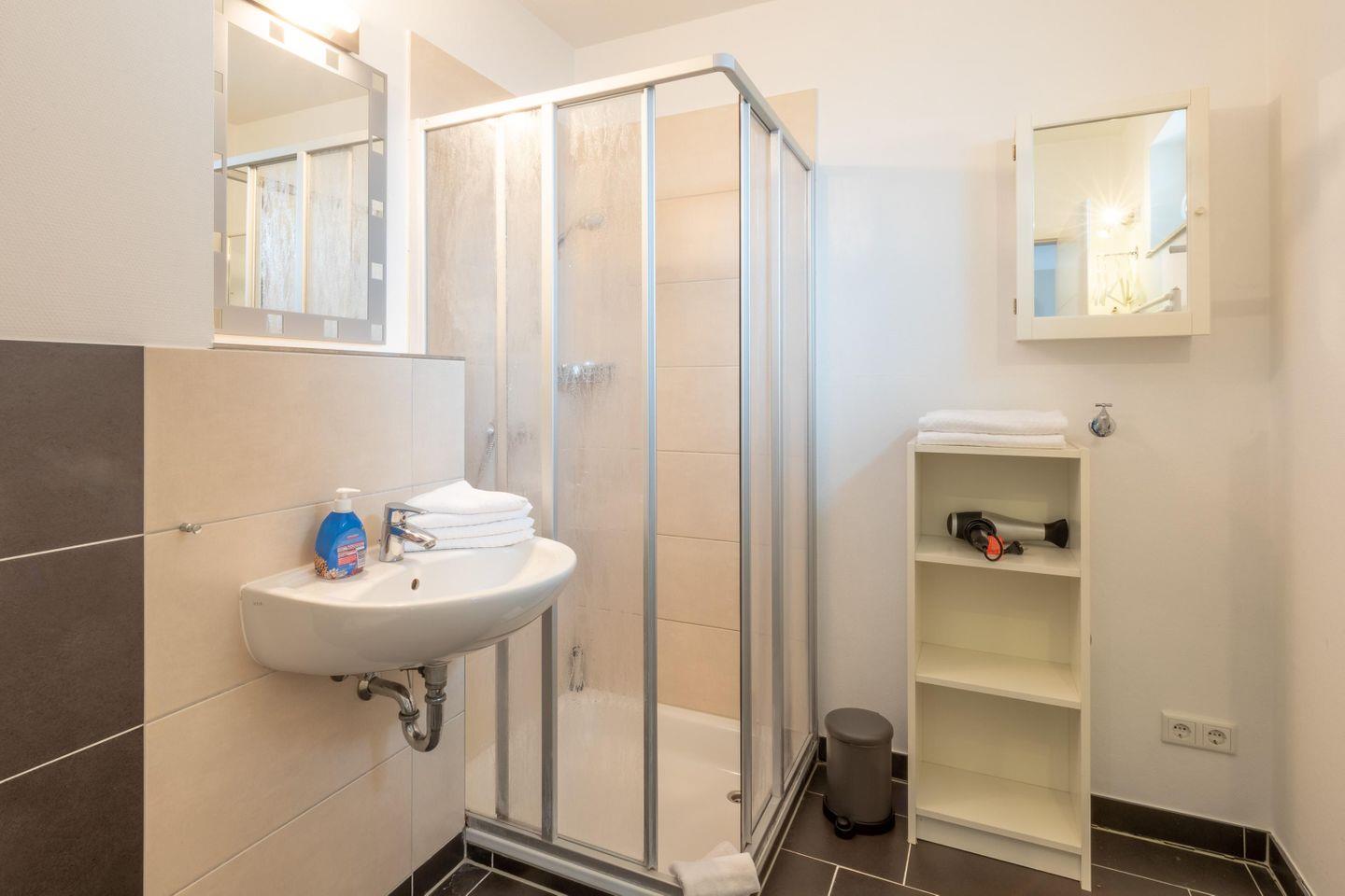 Das Badezimmer bietet mit Dusche und Wanne zusätzlichen Komfort, während durchdachte Details wie Geschirr, Besteck, Küchenutensilien, Wasserkocher und Kaffeemaschine sicherstellen, dass es Ihnen an nichts fehlt.