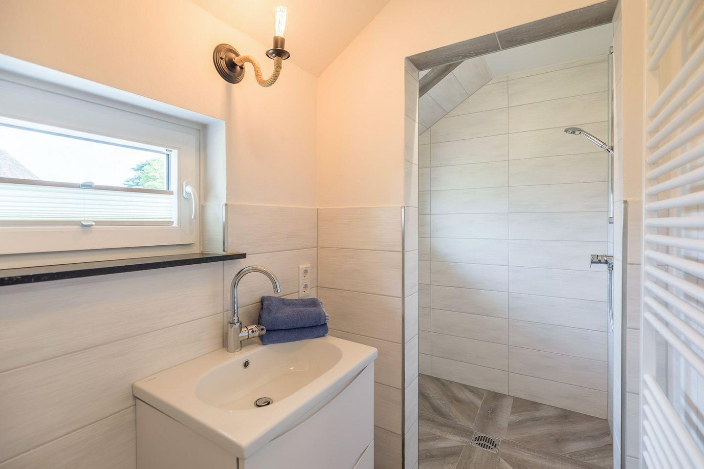 Das Ferienhaus mit seinen 80 qm bietet Platz für bis zu 4 Personen. Im Erdgeschoss befindet sich der gemütliche, helle Wohnbereich mit einem großen SAT-TV, der großzügige Essbereich und die neu eingerichtete Küche (2018) mit Backofen, Ceranfeld mit 4 Herdplatten, Kühlschrank mit Gefrierfach, Filterkaffeemaschine (Filtergröße 4), Wasserkocher und Toaster. Das Badezimmer (EG) ist ebenfalls neu saniert.