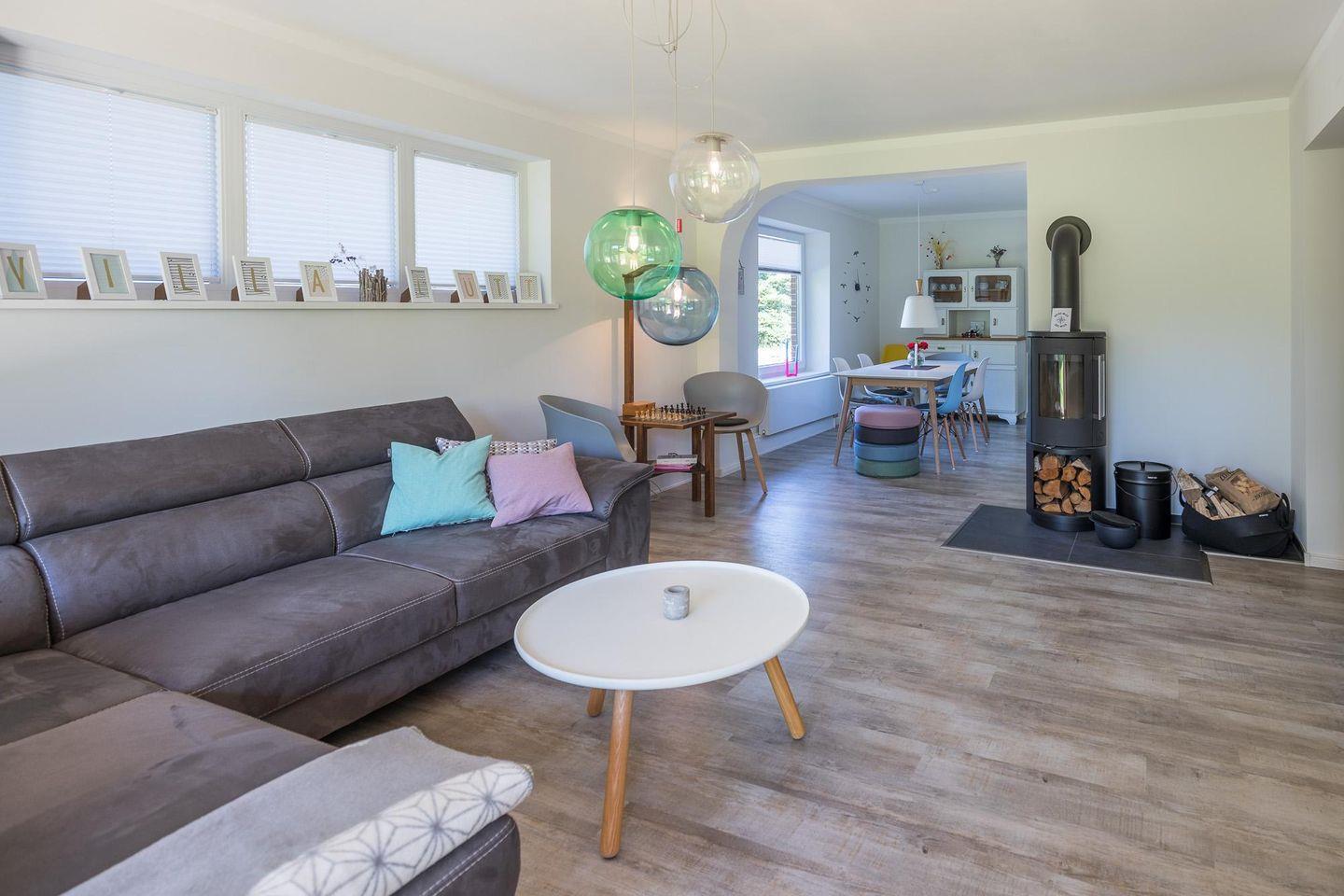 Das ebenerdige Haus eignet sich für 1 bis 6 Personen. Es bietet drei Schlafzimmer: (Schlafzimmer 1 mit einem Doppelbett 180 x 200, Schlafzimmer 2 mit einem Doppelbett 140 x 200, Schlafzimmer 3 mit 2 Betten à 90 x 200). Der lichtdurchflutete Wohnraum mit großem TV-Flachbildschirm lädt zu gemütlichen Nachmittagen mit der ganzen Familie ein. Der Kaminofen sorgt zusätzlich für Behaglichkeit. Die offene Küche ist der perfekte Ort, um im Urlaub ein leckeres Dinner zu kochen. Zur Ausstattung gehören Induktionskochfeld, Backofen, Spülmaschine, Kühlschrank mit Gefrierfach, Toaster, Wasserkocher, Filterkaffeemaschine. Am geselligen Esstisch können Sie speisen, schnacken oder spielen.