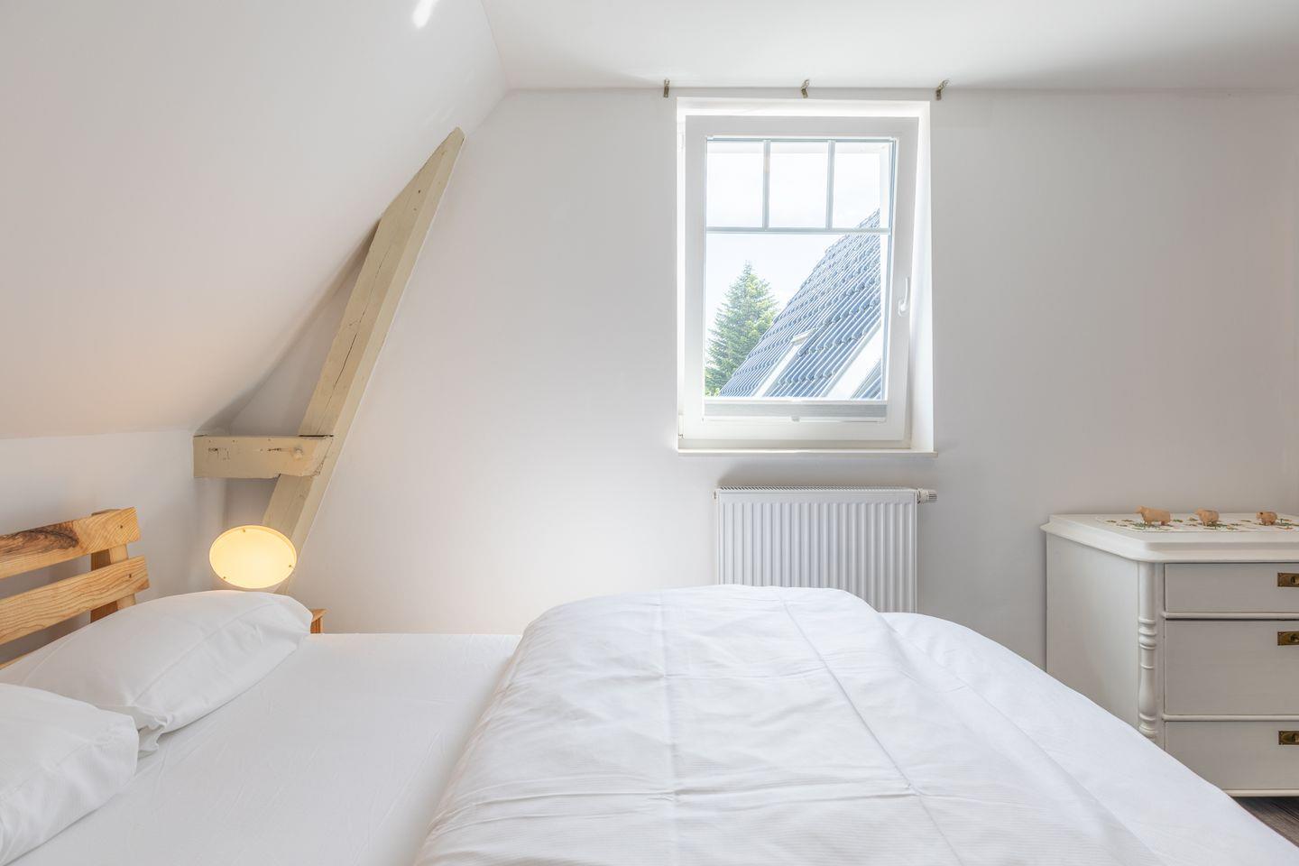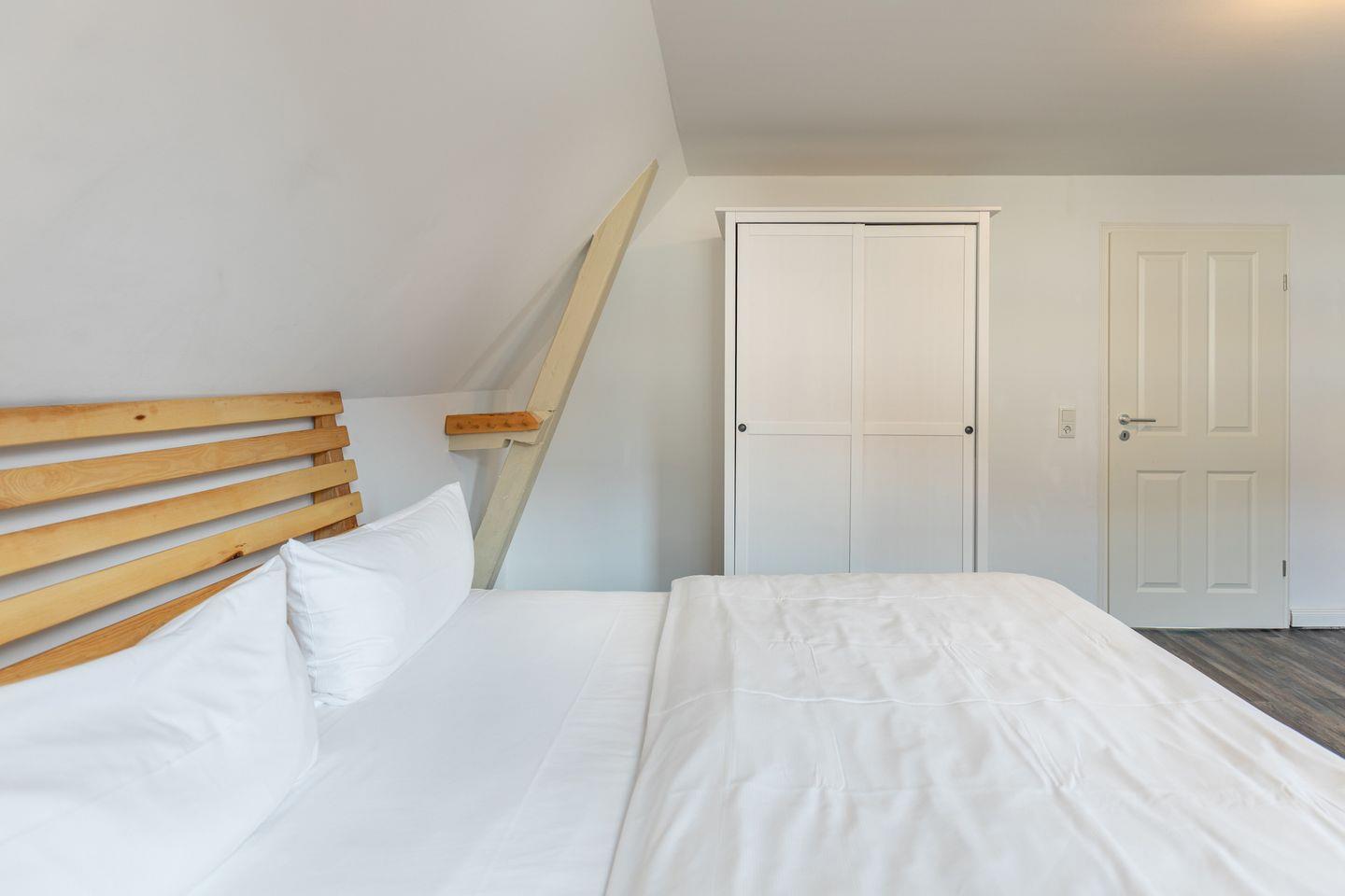 Im Obergeschoss befinden sich zwei Schlafzimmer mit Doppelbetten (je 160 × 200 cm).