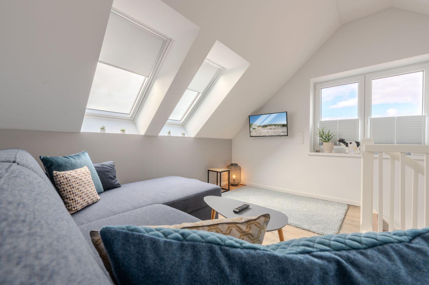 Die gemütliche Sitzecke lädt mit einem großen Flachbild-Smart-TV zum Verweilen ein.