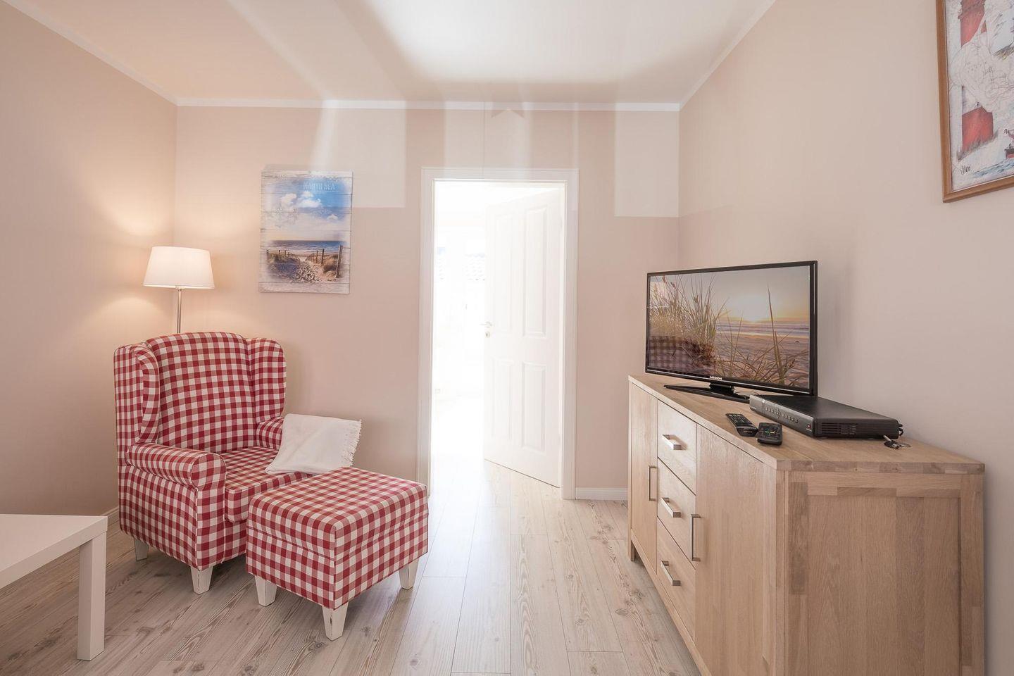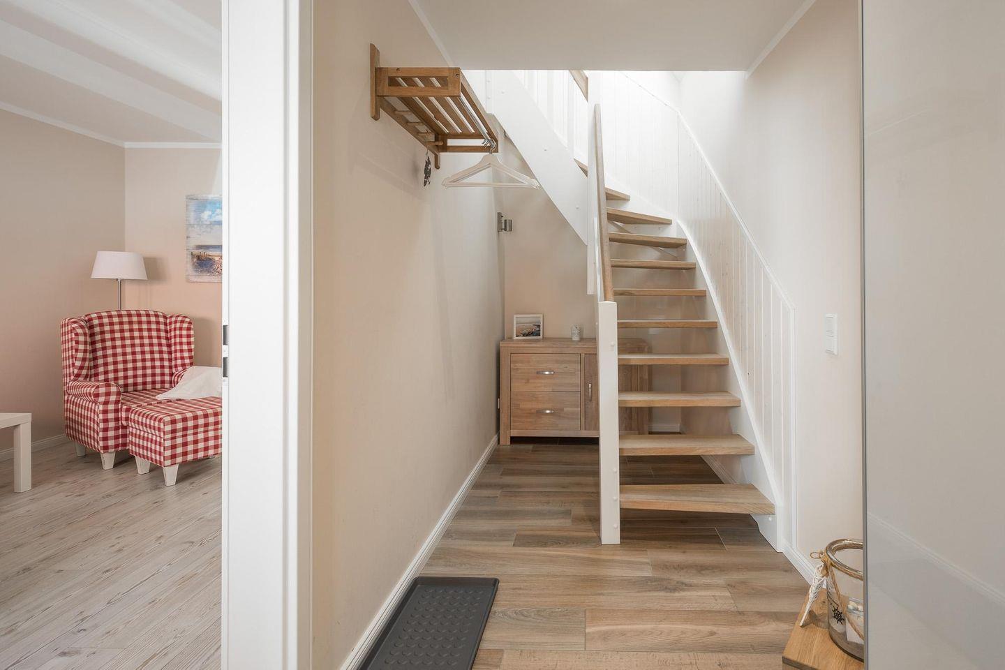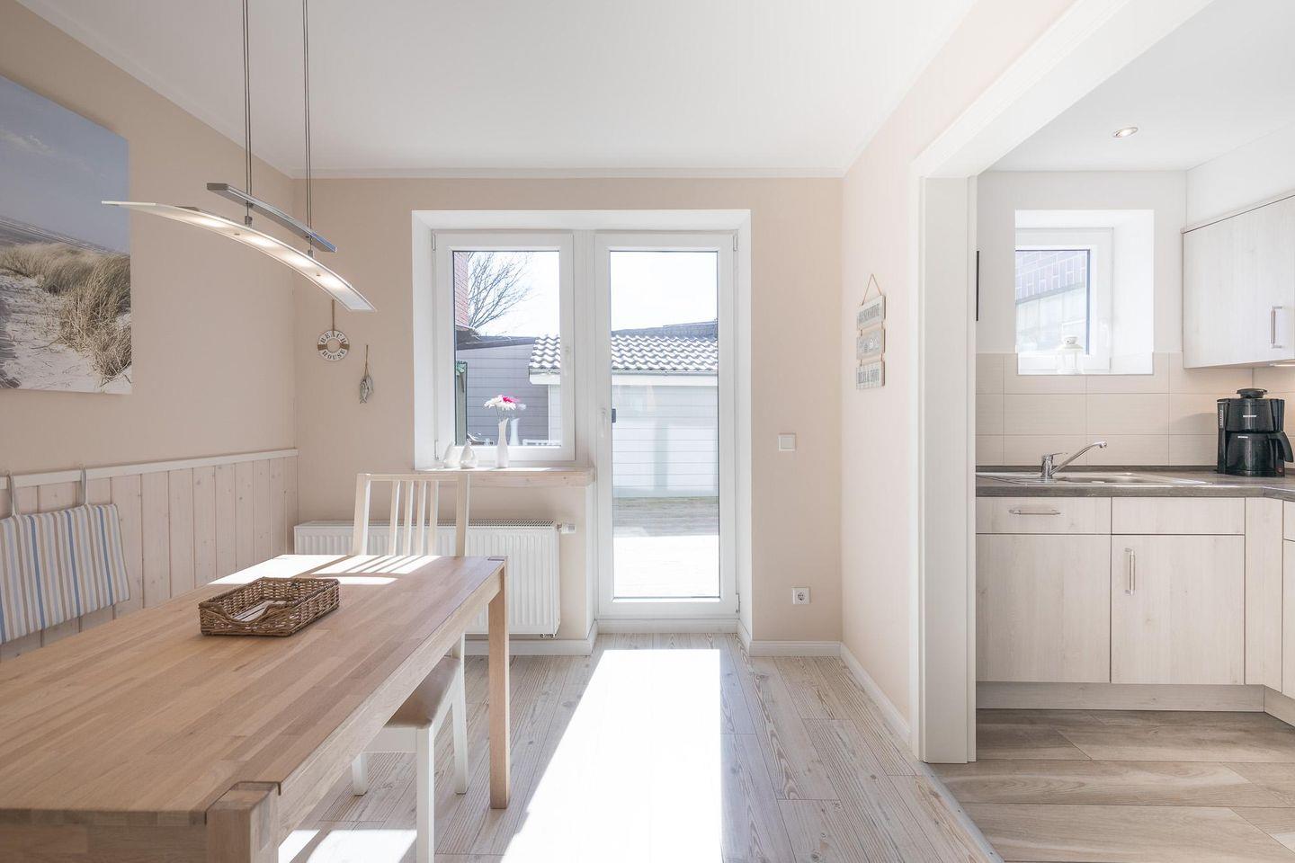 Das Haus eignet sich für bis zu vier Personen. Im Erdgeschoss genießen Sie im Wohnzimmer mit TV gemütliche Stunden. Die Küche ist sehr komfortabel mit Geschirrspüler, Herd mit Ceranfeld, Backofen, Kühlschrank mit Gefrierfach, Dunstabzugshaube, Wasserkocher, Toaster, Filterkaffeemaschine und allen Kochutensilien ausgestattet.