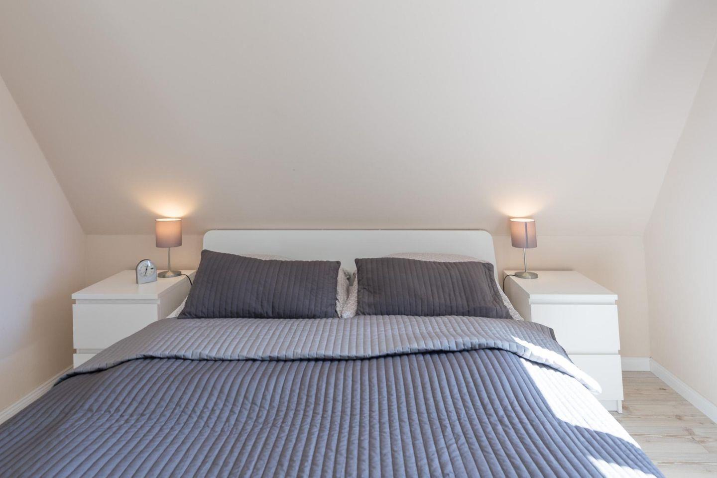 Im 1. Obergeschoss befinden sich die beiden Schlafzimmer mit je einem Doppelbett (160 x 200 und 140 x 200) und einem Duschbad.