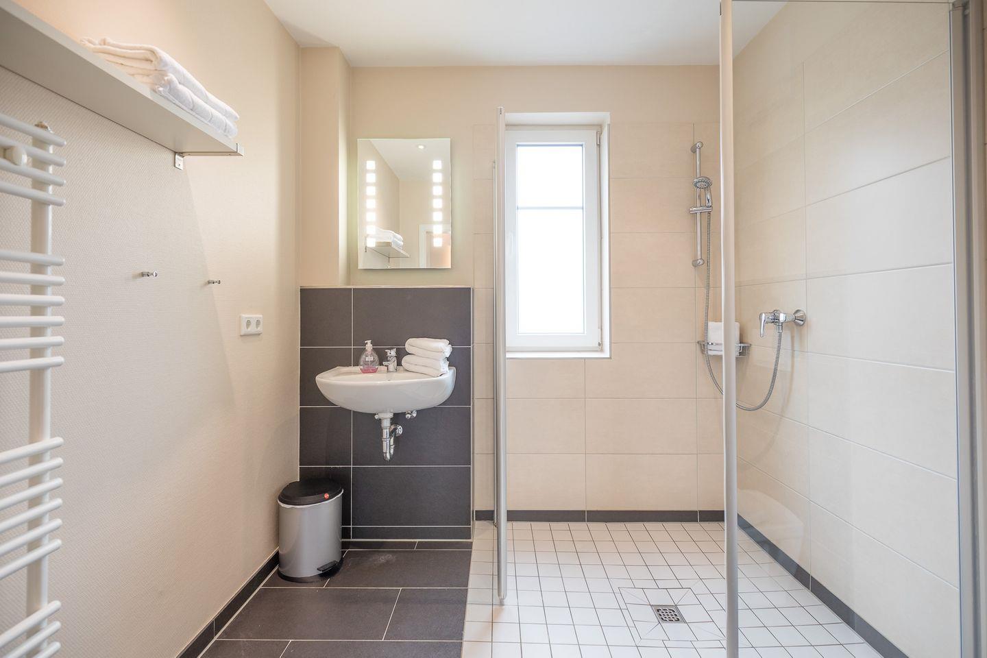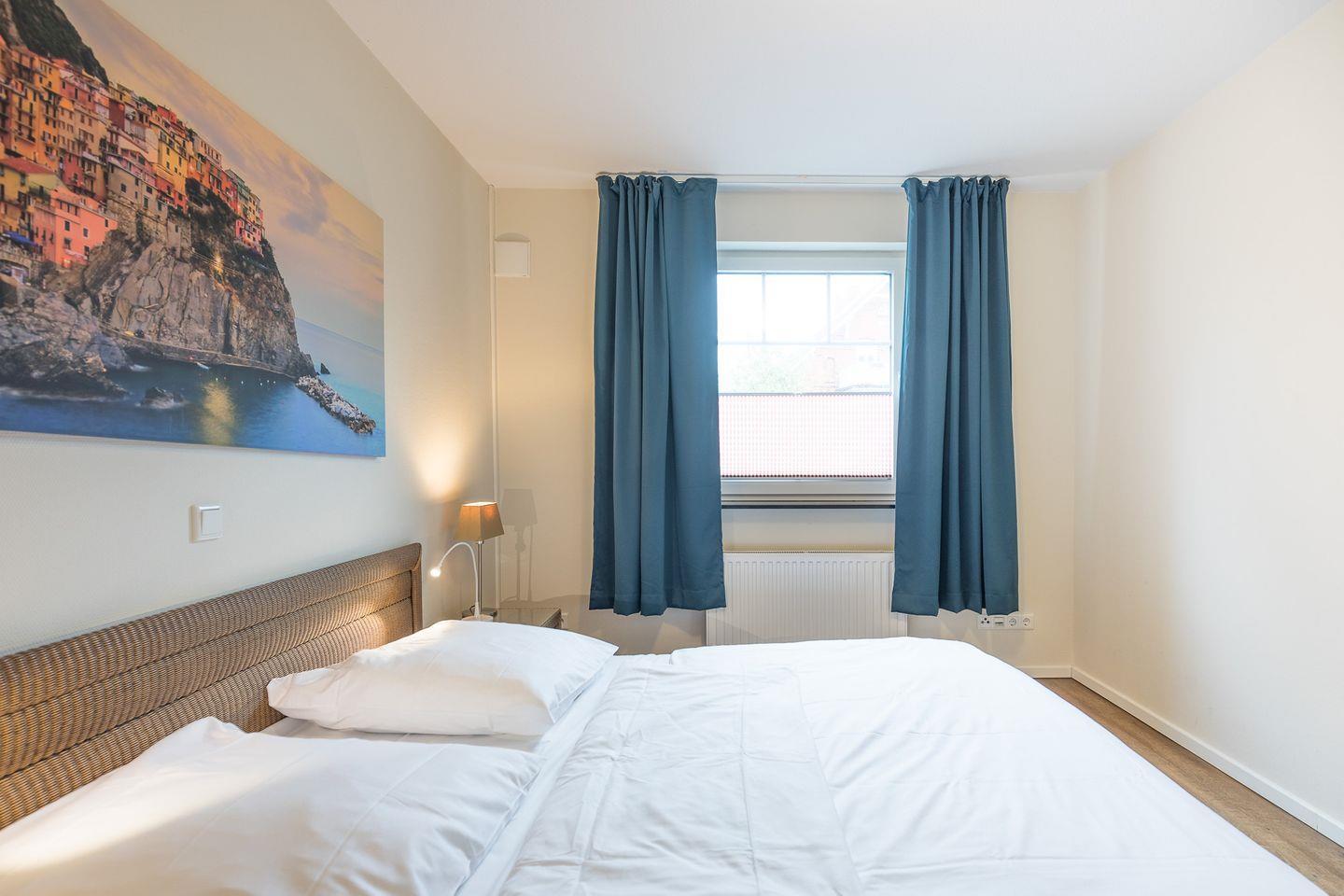 Die Ferienwohnung ist hochwertig eingerichtet: ein Schlafzimmer mit einem bequemen Doppelbett (180 × 200) und eine komfortable und gut ausgestattete Einbauküche mit Ceranfeld, Backofen, Geschirrspülmaschine, Mikrowelle Kaffeemaschine (Filtergröße 4). Der Wohnbereich verfügt über ein gemütliches Sofa und einen Flachbild-TV. Das moderne Badezimmer ist mit einer ebenerdigen Dusche, WC und Waschbecken eingerichtet. Auf der kleinen Terrasse können Sie den Tag gemütlich ausklingen lassen.