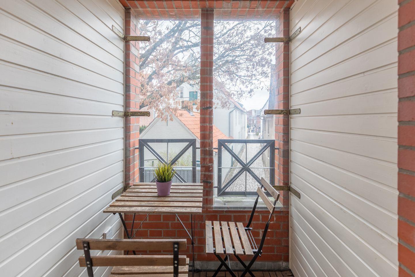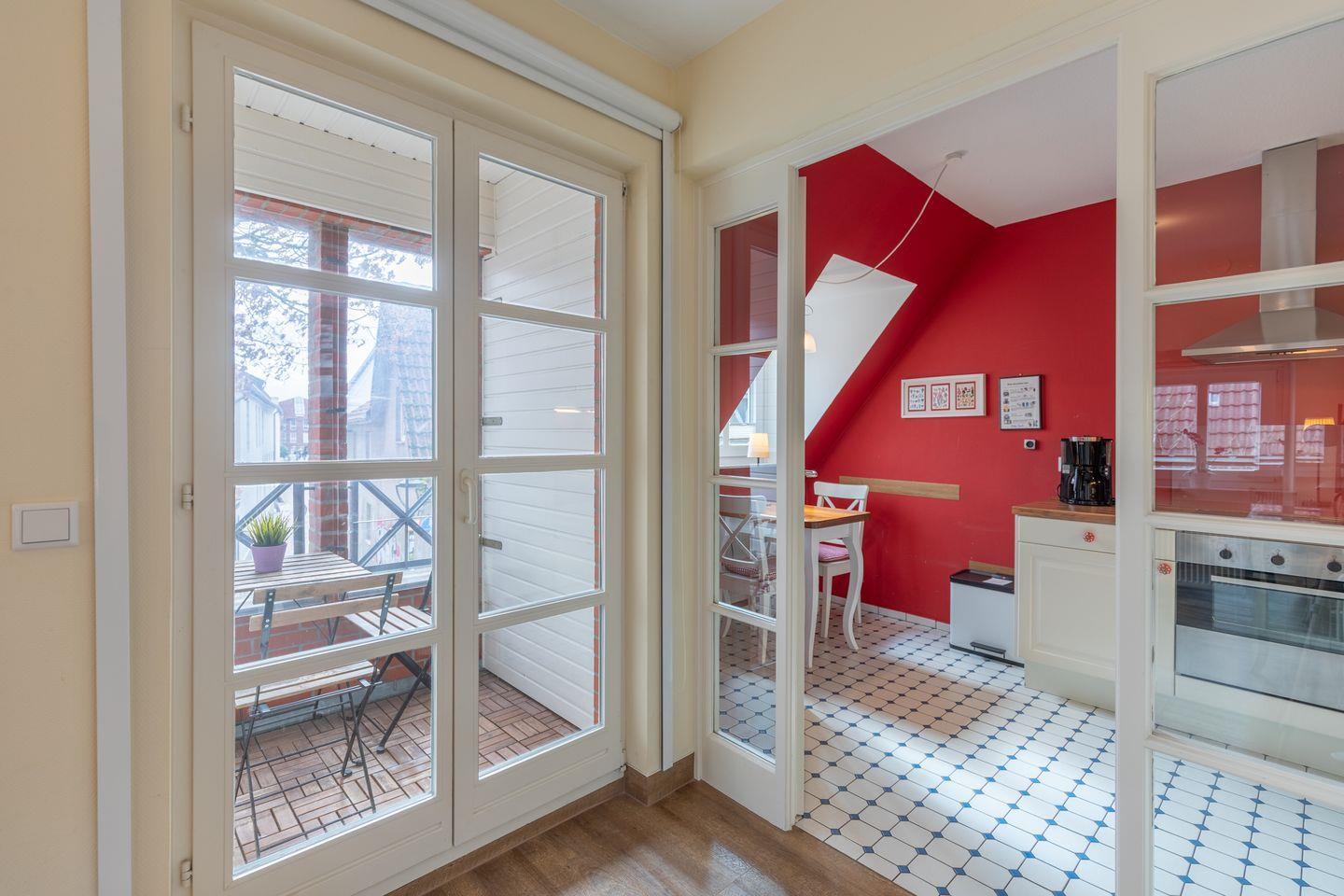 Charmante Ferienwohnung mit Balkon in Husums Altstadt, ideal für 2 Personen und ruhige Nordseeferien.