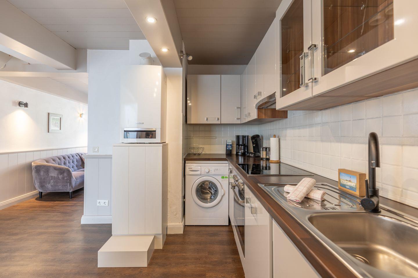 Die Ferienwohnung ist modern und gemütlich zugleich eingerichtet und lässt keine Wünsche offen. In der offen gestalteten Küche finden Sie alle wichtigen Geräte und Utensilien, um auch im Urlaub Ihre Lieblingsgerichte zuzubereiten – darunter ein Herd mit Ceranfeld, ein Kühlschrank mit Gefrierfach sowie eine Spülmaschine. Der angrenzende Wohn- und Essbereich bietet viel Platz für gemeinsame Stunden, sei es beim Essen am großen Esstisch oder beim Entspannen auf dem Sofa. Für mediale Unterhaltung sorgen drei Fernseher und Bluetooth-Radio.