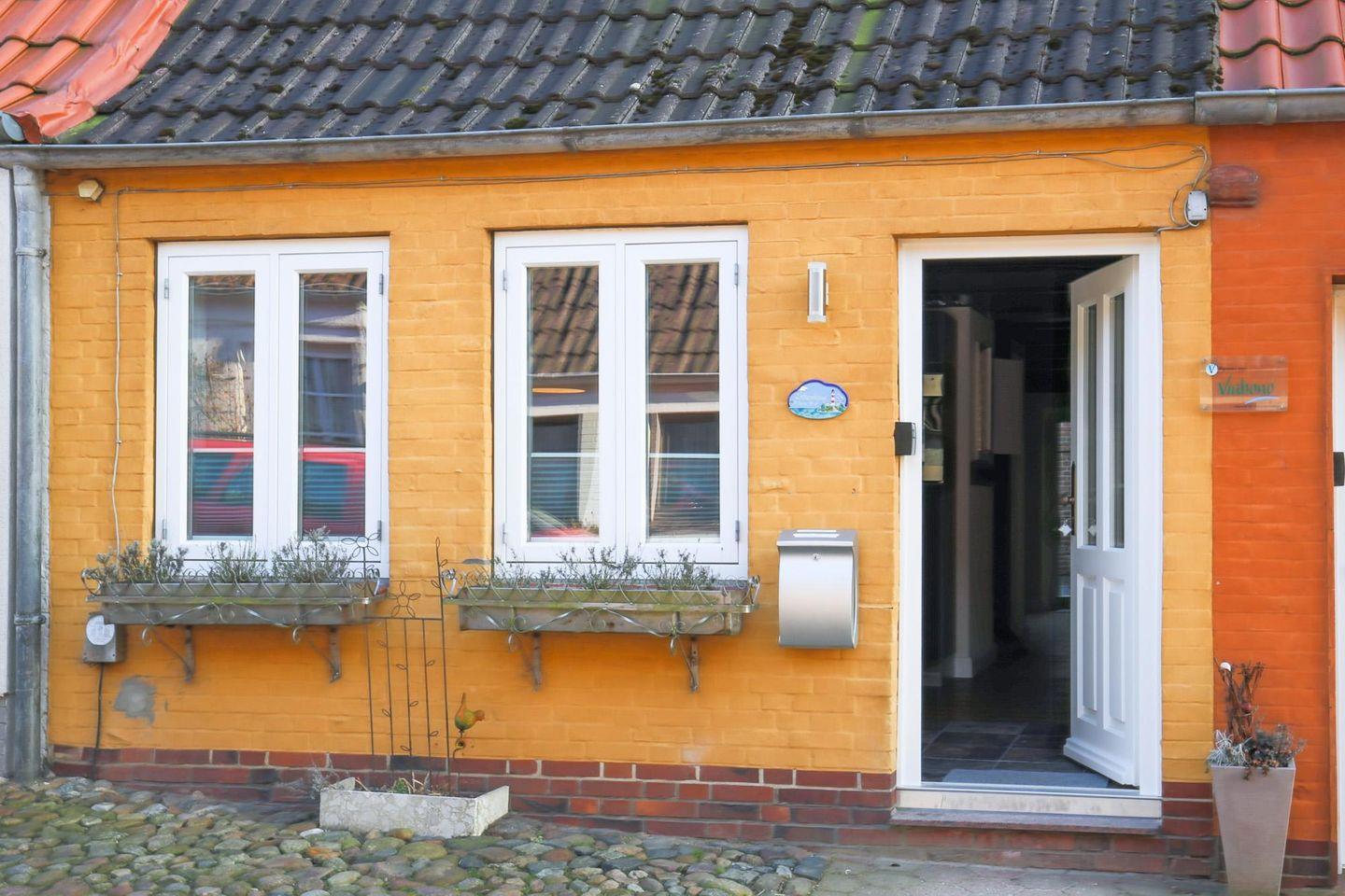 Modernes Ferienhaus Matthis Skipperhuus in Husums Altstadt, nahe Hafen, ideal für Nordseeurlaub mit Terrasse und WLAN.